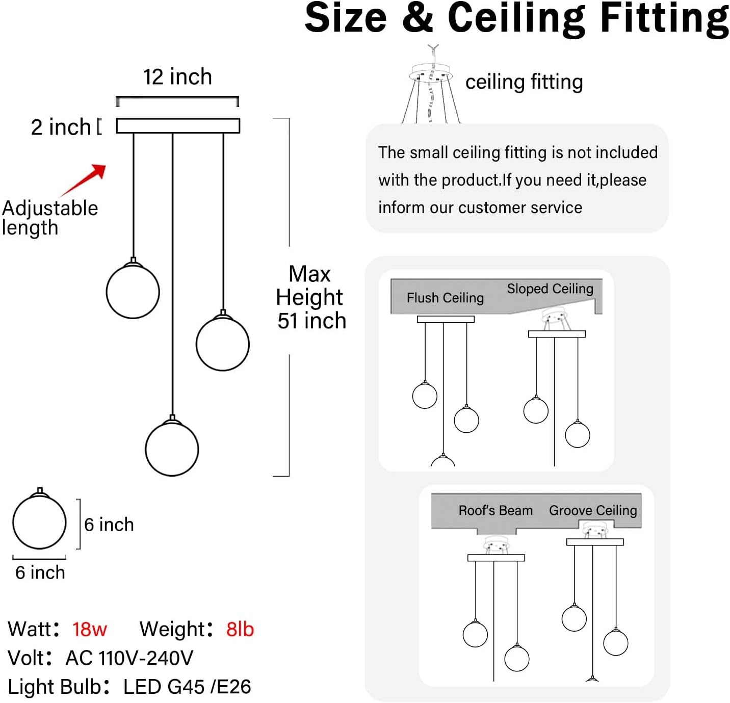 - 【Modern LED Pendant Lighting Installation】Please carefully read the size drawing and choose the suitable size for your home. The installation is simple. After installing the top panel on the ceiling, install the glass. Please let us know if you have any questions