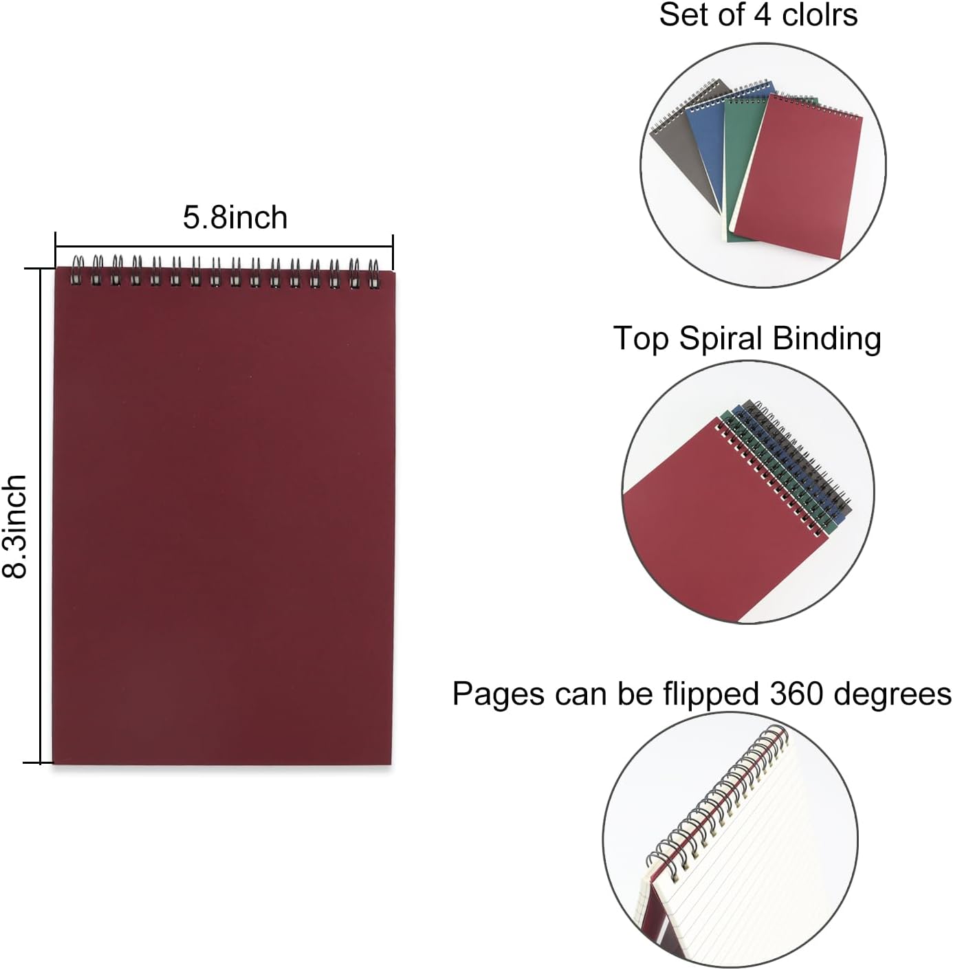 - Package contains: you will receive 4 pack A5 top wirebound Notepad (gray,blue,green,red).