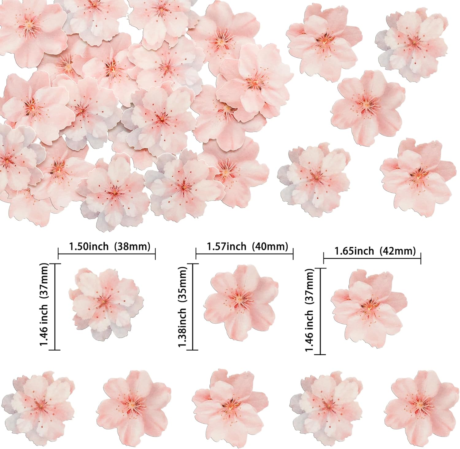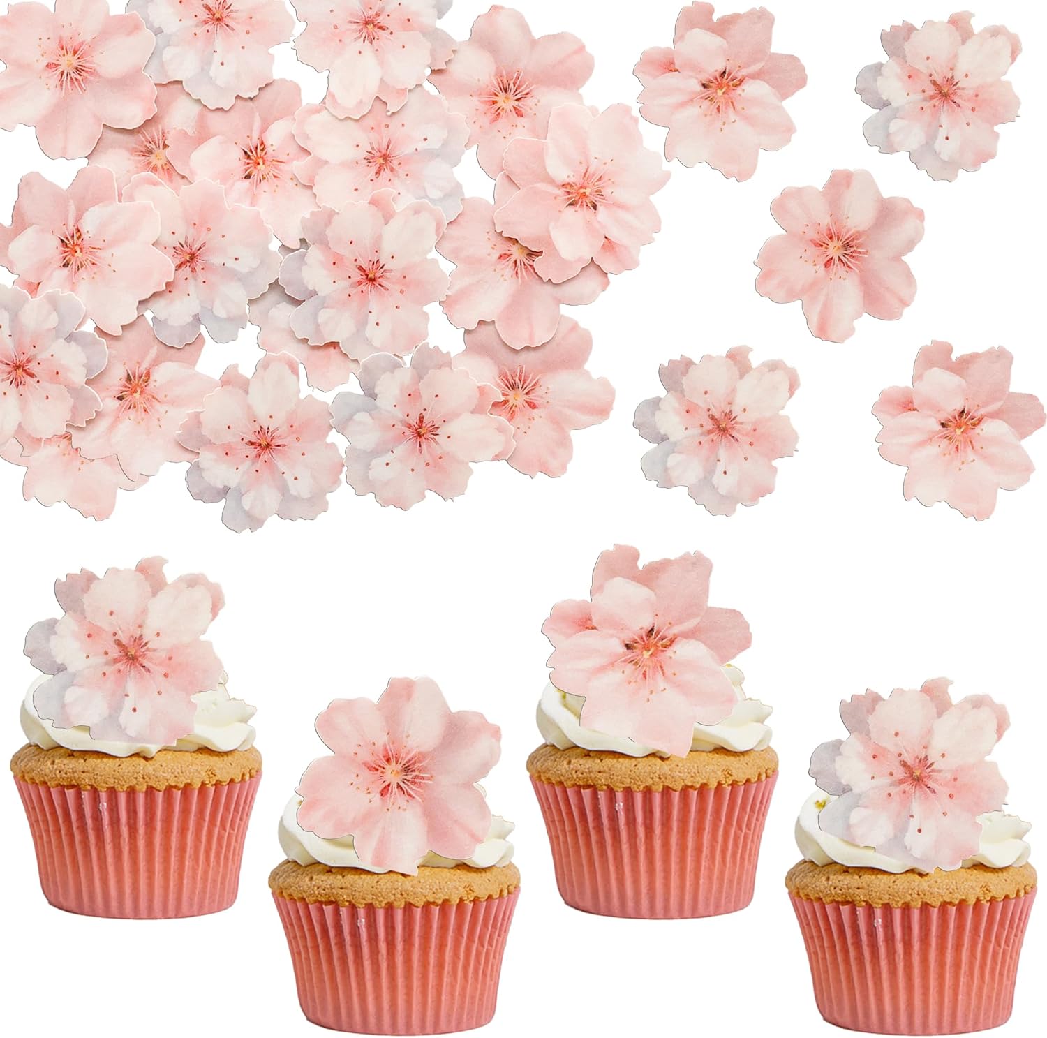 Ephlyn 54Pcs Edible Cherry blossom Cupcake Toppers Spring Bridal Engagement Baby Shower Birthday Party Cupcake Picks Anniversary Party Decorations Supplies Pink