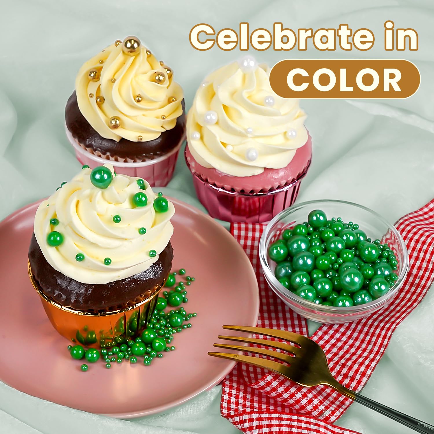 - Applicable Occasions:Green cake decorations are great for weddings, birthdays, graduation ceremony, parties,holidays,and more to add party fun.Or simply indulging in everyday treats, our green pearl sprinkles are the perfect finishing touch to your culinary creations.