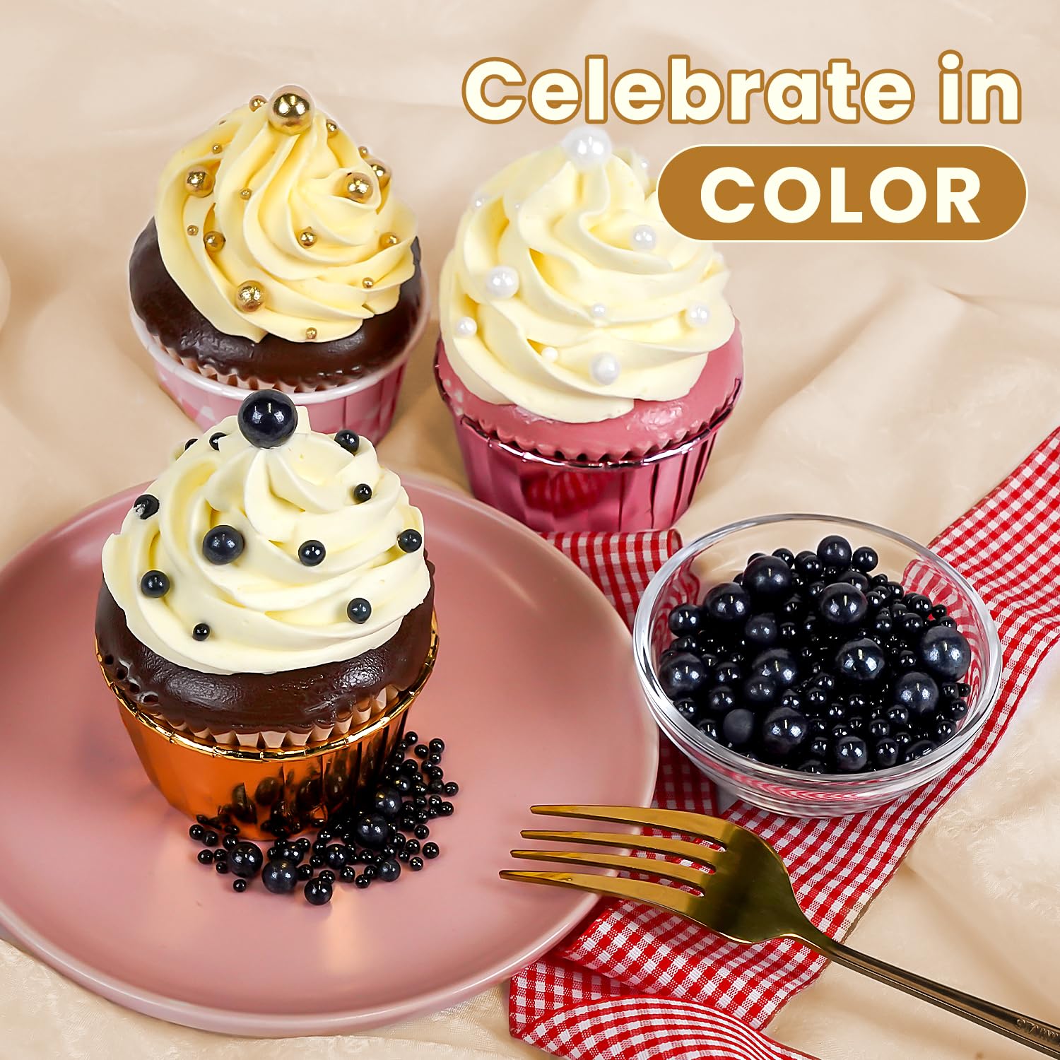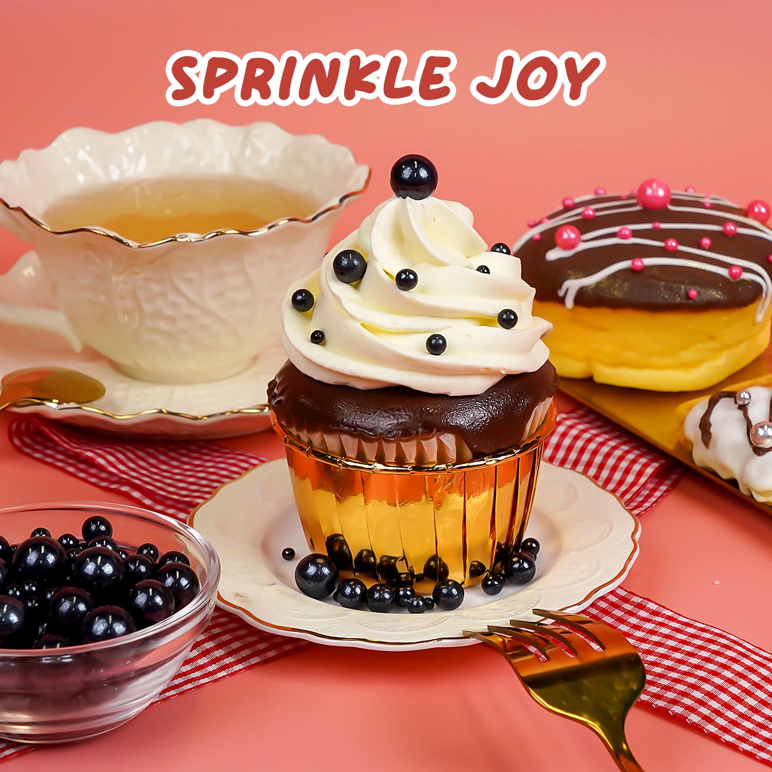 - Safe & Certified Pearls: Food-grade black pearls sugar sprinkles made with non-GMO ingredients, 0% preservatives. Kosher/Halal-certified in facilities with no allergens (soy/nut/dairy). Tamper-proof sealed for safety.