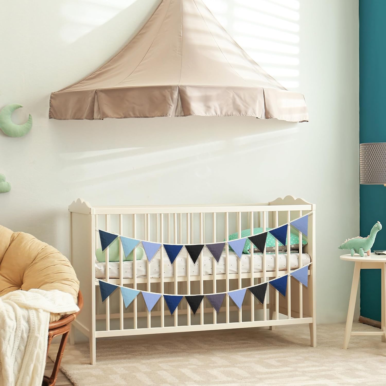 Oudain 15.5 ft Pennant Banner Flags, 2 Pcs Nursery Garland Triangle Bunting Flag Baby Banner for Nursery Decor Baby Birthday Boho Wedding Shower Party Event, Each 7.75 ft(Blue Color)