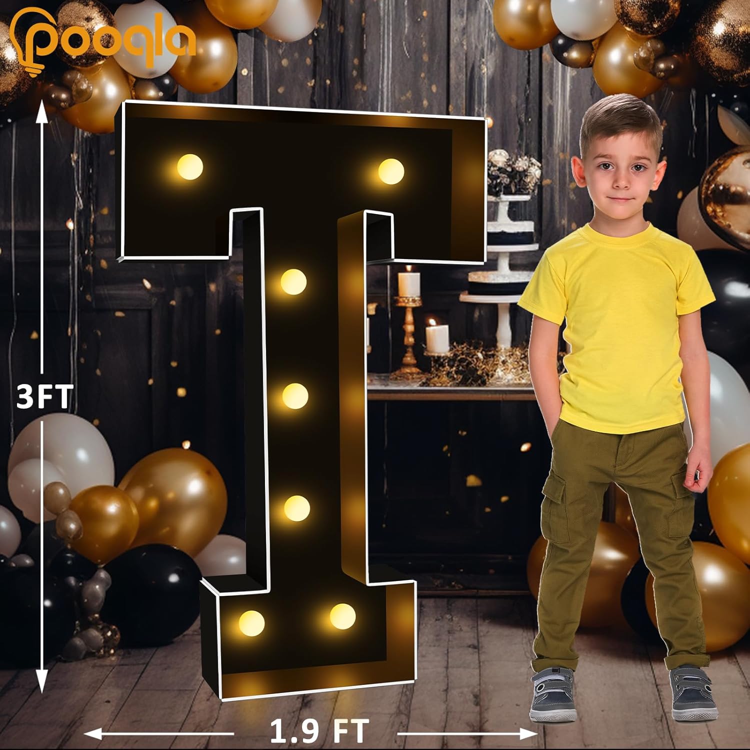 Pooqla 3FT Marquee Light Up Letters, Black LED Party Decor Large Marquee Letters 3 Feet Tall, Giant Mosaic Letter for Birthday Graduation Anniversary Wedding Decoration, Letter T