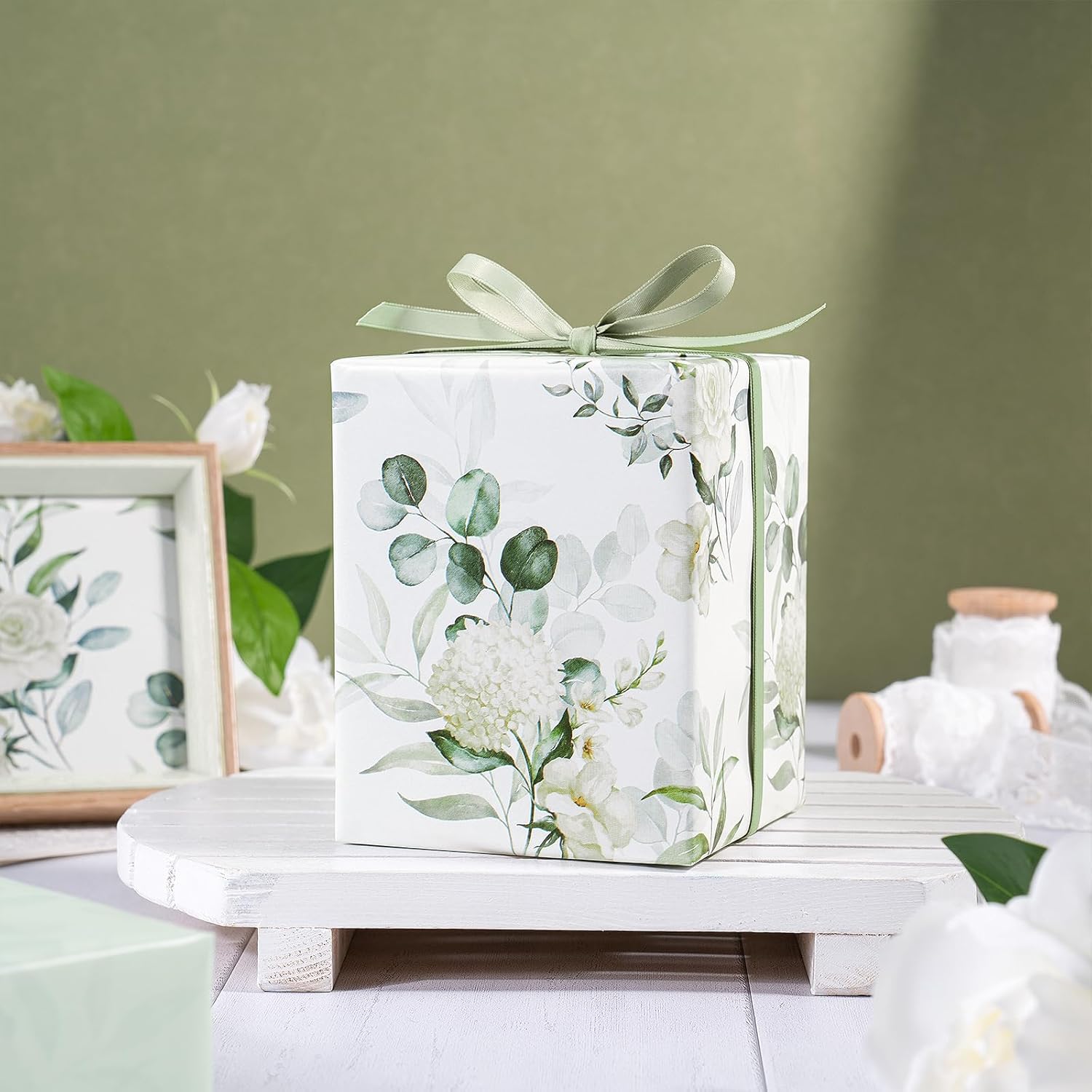 - Elegant Reversible Design: This double-sided wrapping paper features a delicate floral greenery pattern on one side and a sophisticated sage green solid color on the other, offering two beautiful styles in one roll for versatile gift wrapping