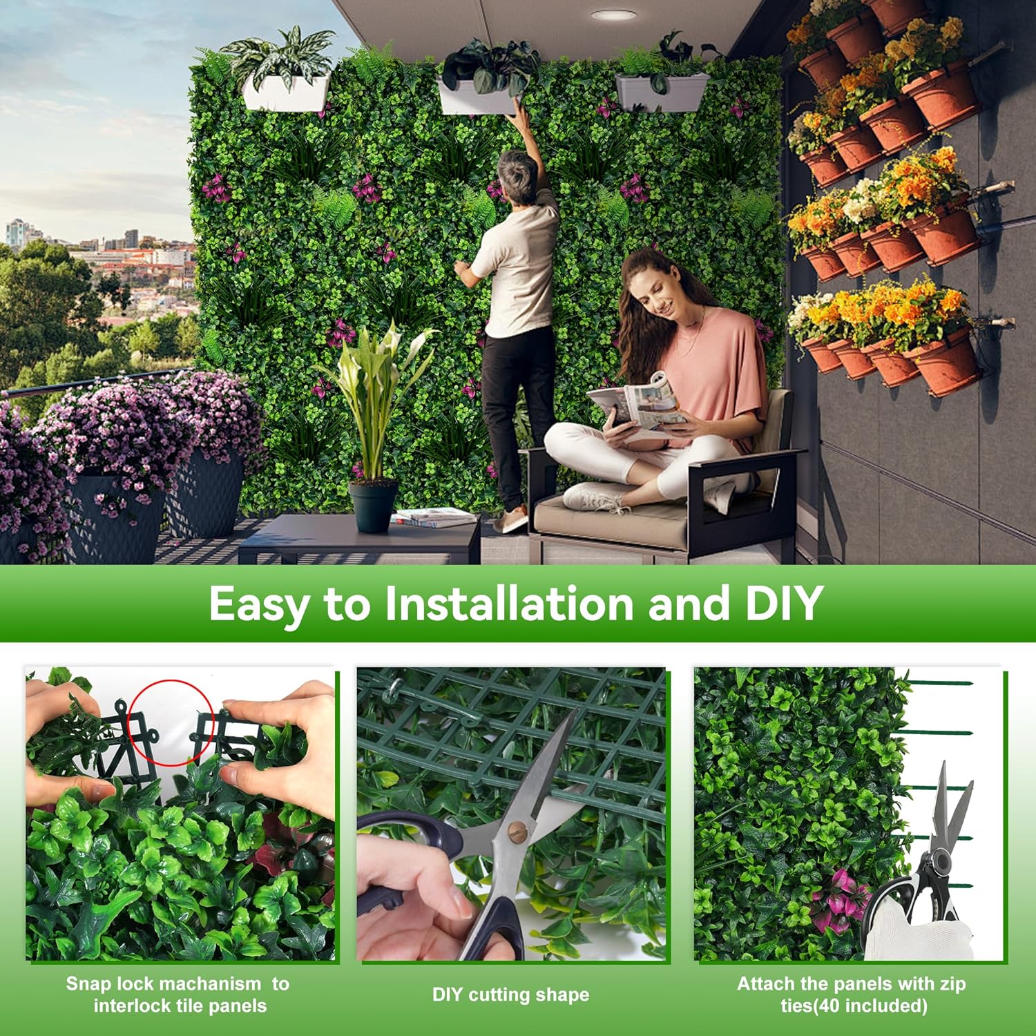 - Hassle-Free Installation: No tools or complicated steps required! The package comes with 16 pieces (20”x20”) with 40 zip for effortless mounting on walls, fences, partitions, or railings. The lightweight yet sturdy design allows for easy repositioning, so you can refresh your space anytime. Installation takes just minutes—saving you time and effort