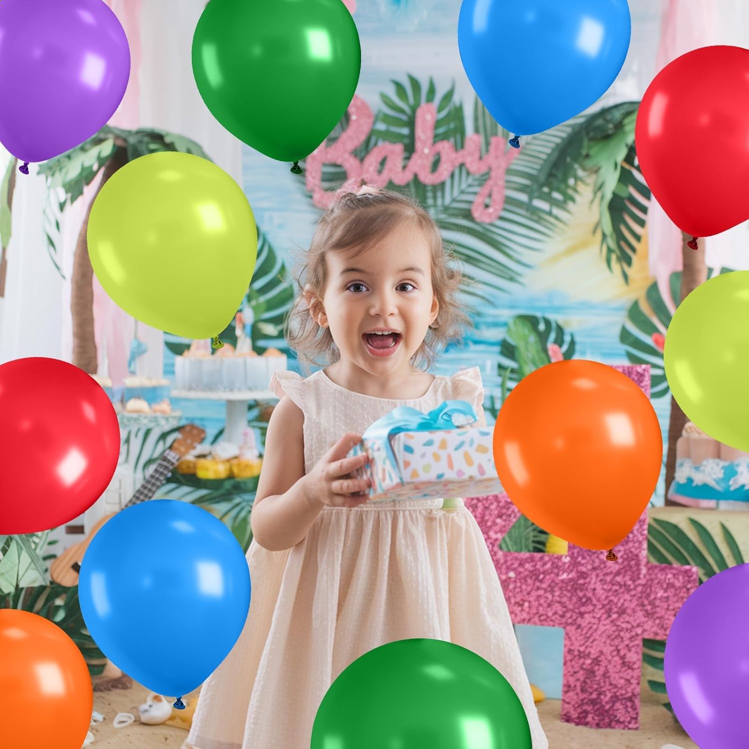 - 【WHAT YOU WILL GET】Our Green Purple Birthday Party Balloons include 50pcs latex balloons, designed to help you create stunning decoration: 8 x dark green balloons, 8 x fruit green balloons, 8 x orange balloons, 8 x red balloons, 8 x purple balloons, 8 x dark blue balloons, 2 x white ribbon. The size of the balloon is about 12 inches after inflation.
