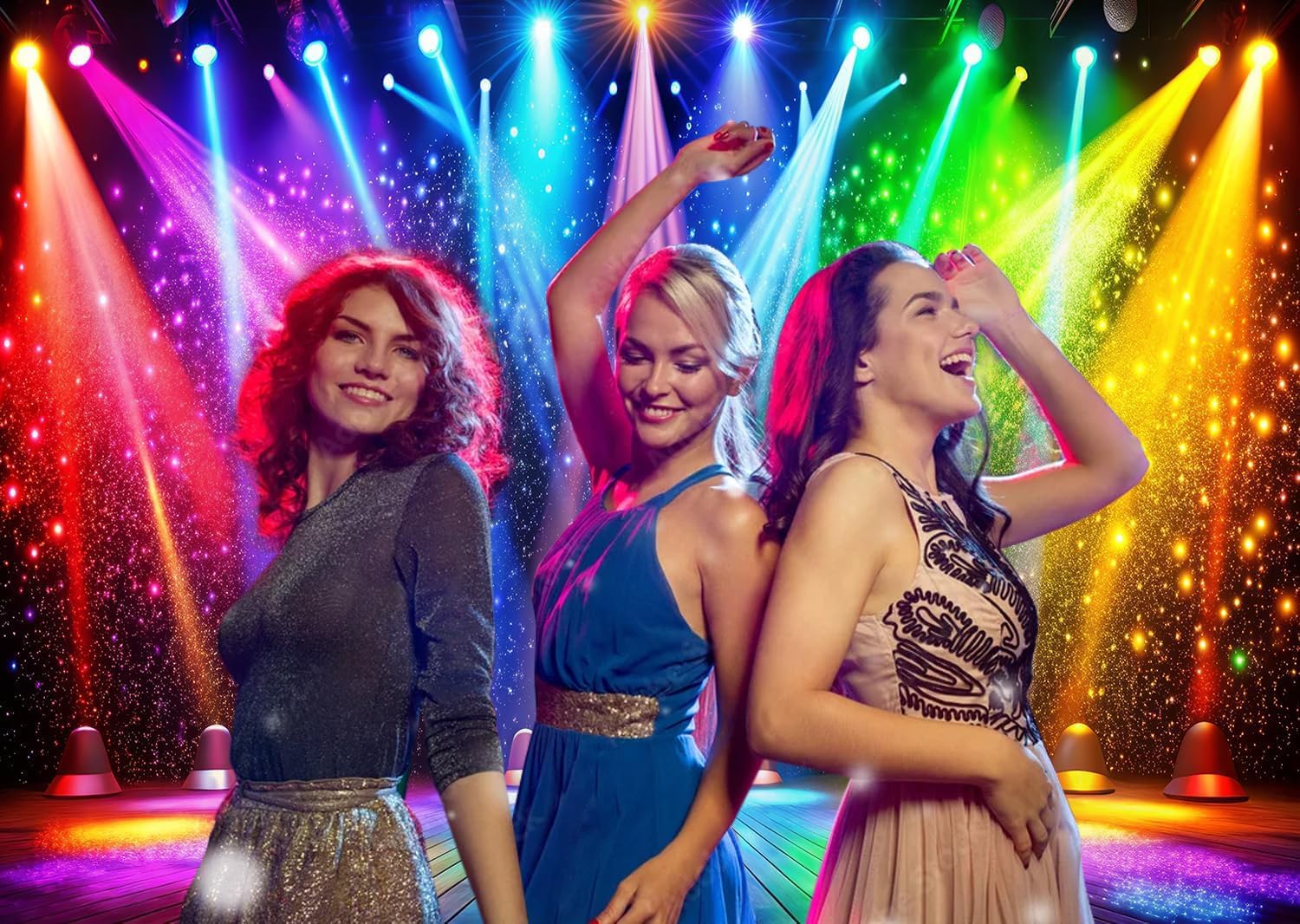 - 🎉 Vibrant Rainbow Light Design – Featuring a dazzling array of rainbow spotlights and glitter effects, this backdrop instantly creates a festive atmosphere for parties, concerts, or photoshoots.
