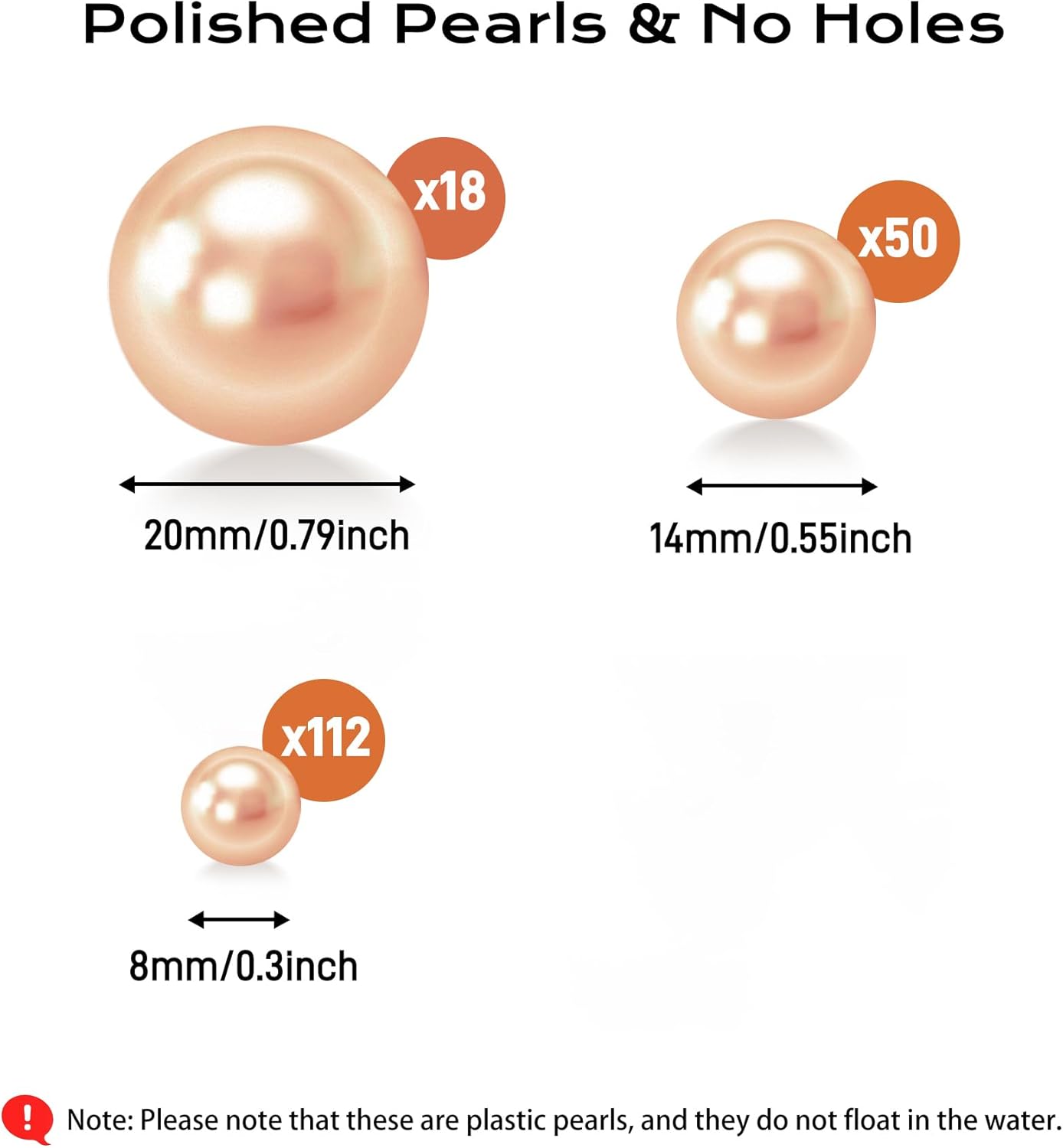 - 180PCS Multi-size Pearls: This set includes 180 premium beads in three elegant sizes—112 beads at 8mm (0.32"), 50 beads at 14mm (0.55"), and 18 beads at 20mm (0.79"). These versatile decorative beads add instant sophistication to any vase or container, perfect for elevating your home decor.
