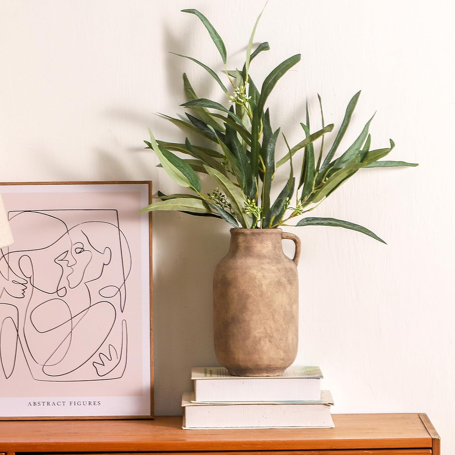 Ceramic Flower Vase Home Decor - 9.7 inch Large Table Flowers Vases Living Room Bedroom Plant Decorations Farmhouse Vintage for Kitchen Shelf Office Coffee Dining Desk House Women (Retro, 9.7")