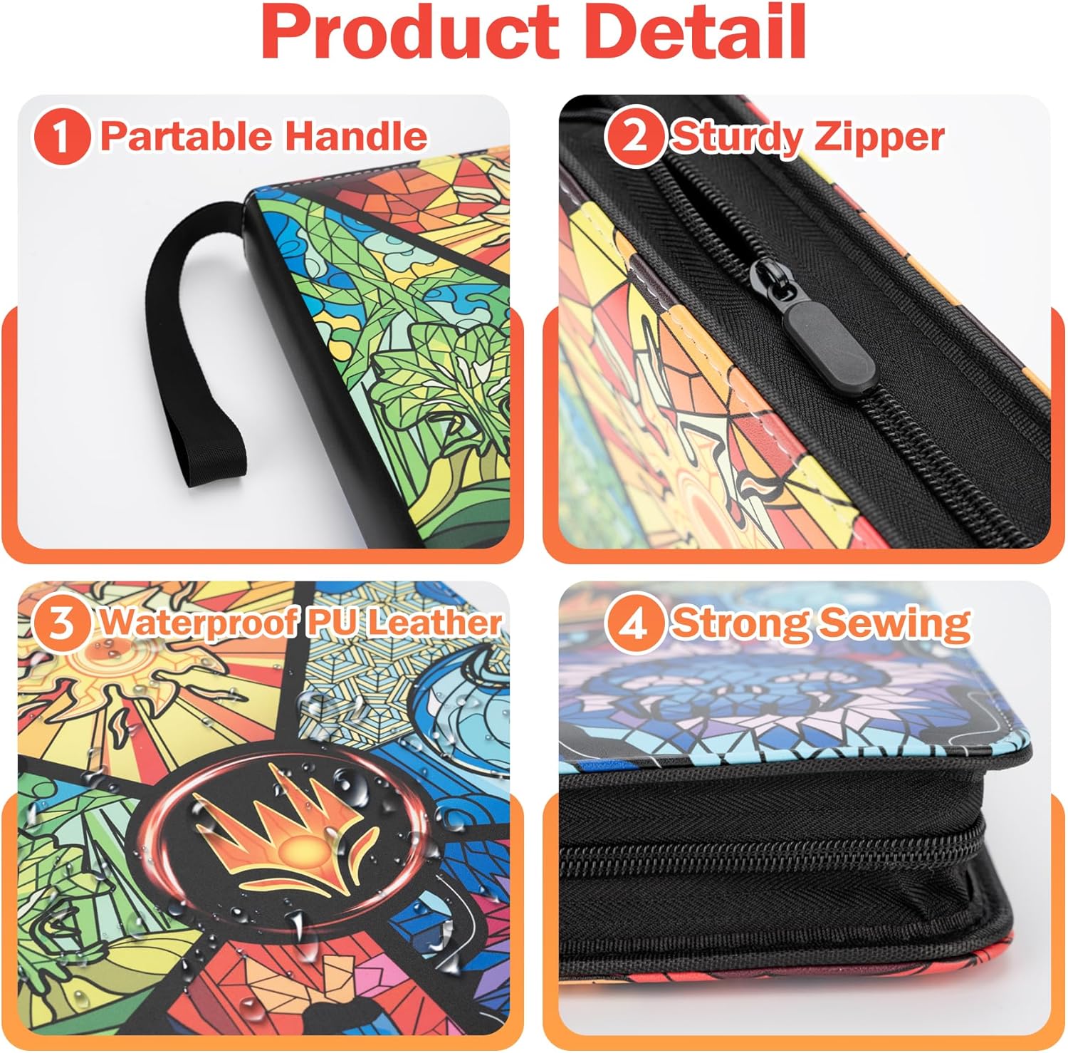 - Made To Last :-our carrying case binder is comfortable to touch and hold in hands. The card binder for trading cards is made of premium PU leather, Water or raindrops won’t seep through. Closed zipper design provides multiple protections so that the inner page or cards does not fall.Handle straps design can carry around to show off cards to your friends