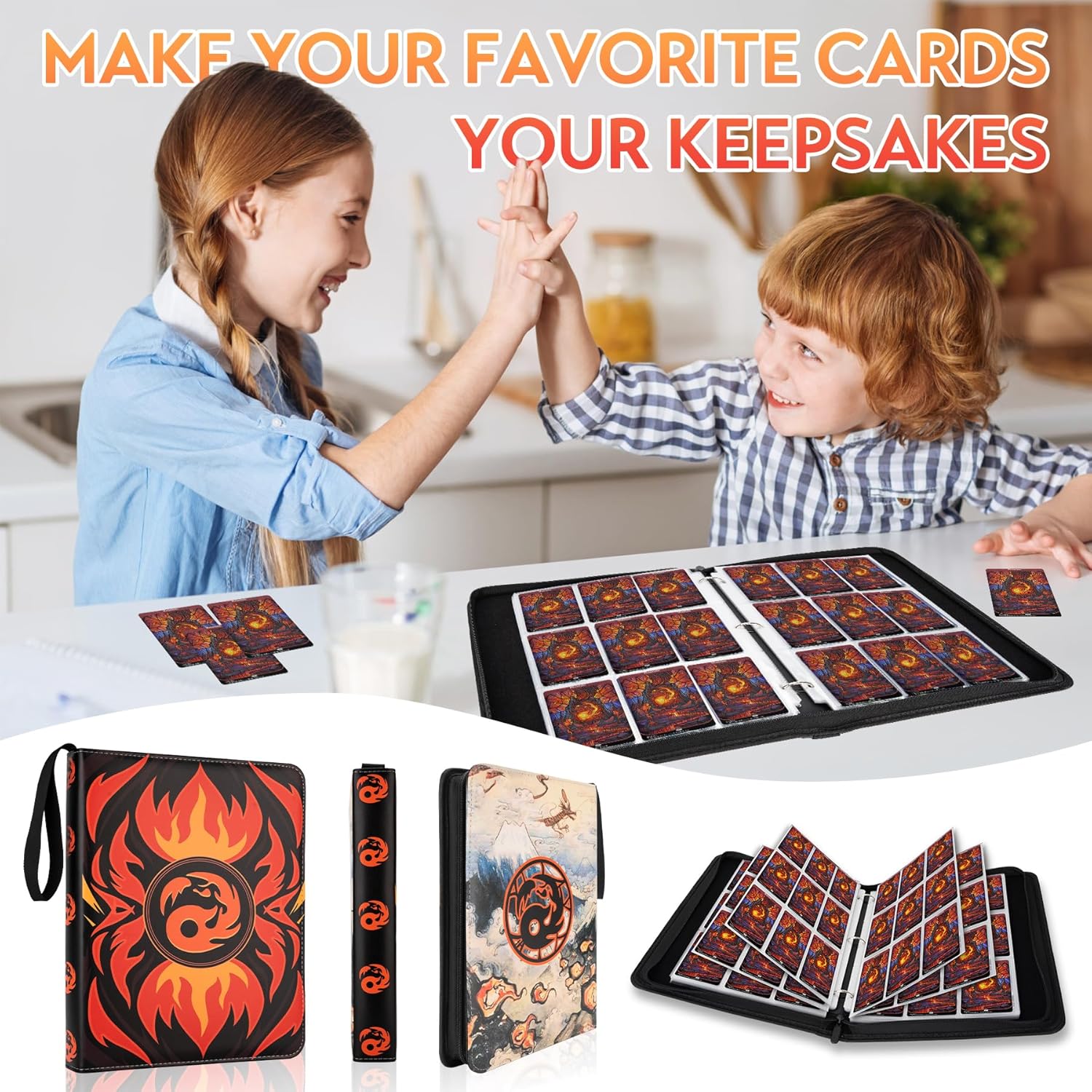 - Made To Last :our carrying case binder is comfortable to touch and hold in hands. The card binder for trading cards is made of premium PU leather, Water or raindrops won’t seep through. Closed zipper design provides multiple protections so that the inner page or cards does not fall.Handle straps design can carry around to show off cards to your friends