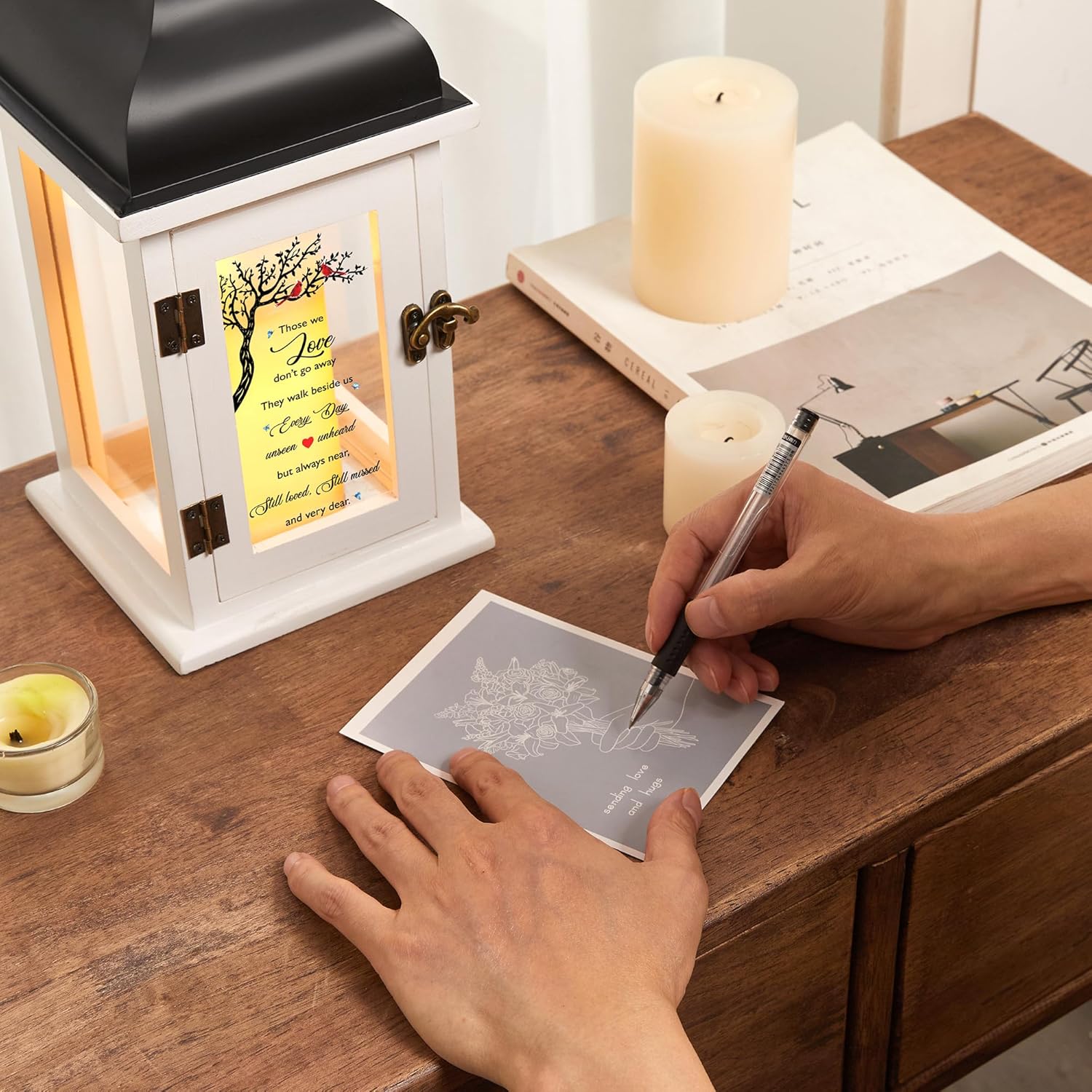 WOODEXPE Memorial Lantern Sympathy Gift for Loss of Loved One with Flickering LED Candle and Remote Control Bereavement Remembrance Memorial Gift