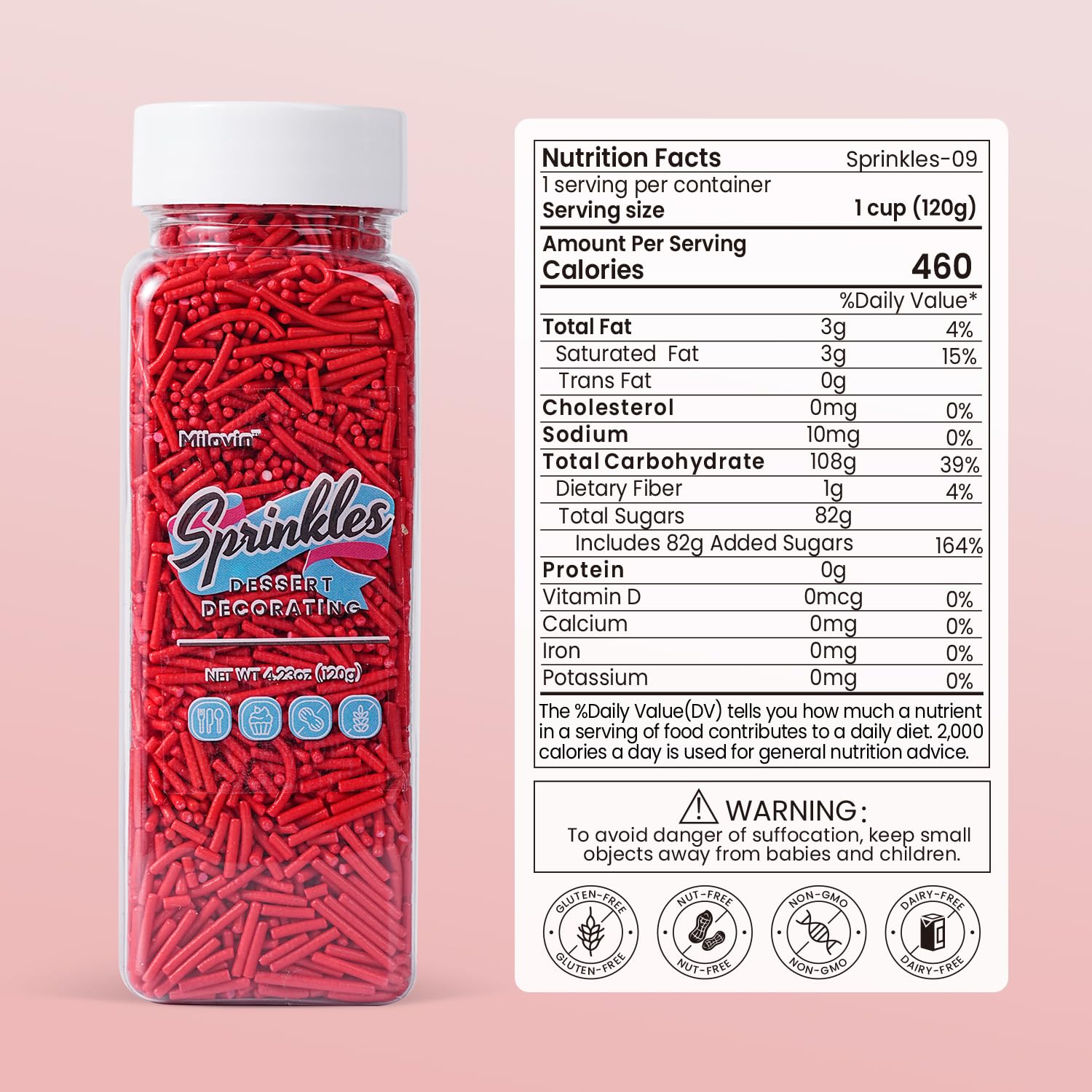 - High Quality and Safe: Made with food-grade ingredients. Edible, Gluten-free, Nut-free, Dairy-free, Non-GMO. Our red jimmies sprinkles meet American food standards and guard your and your family's health