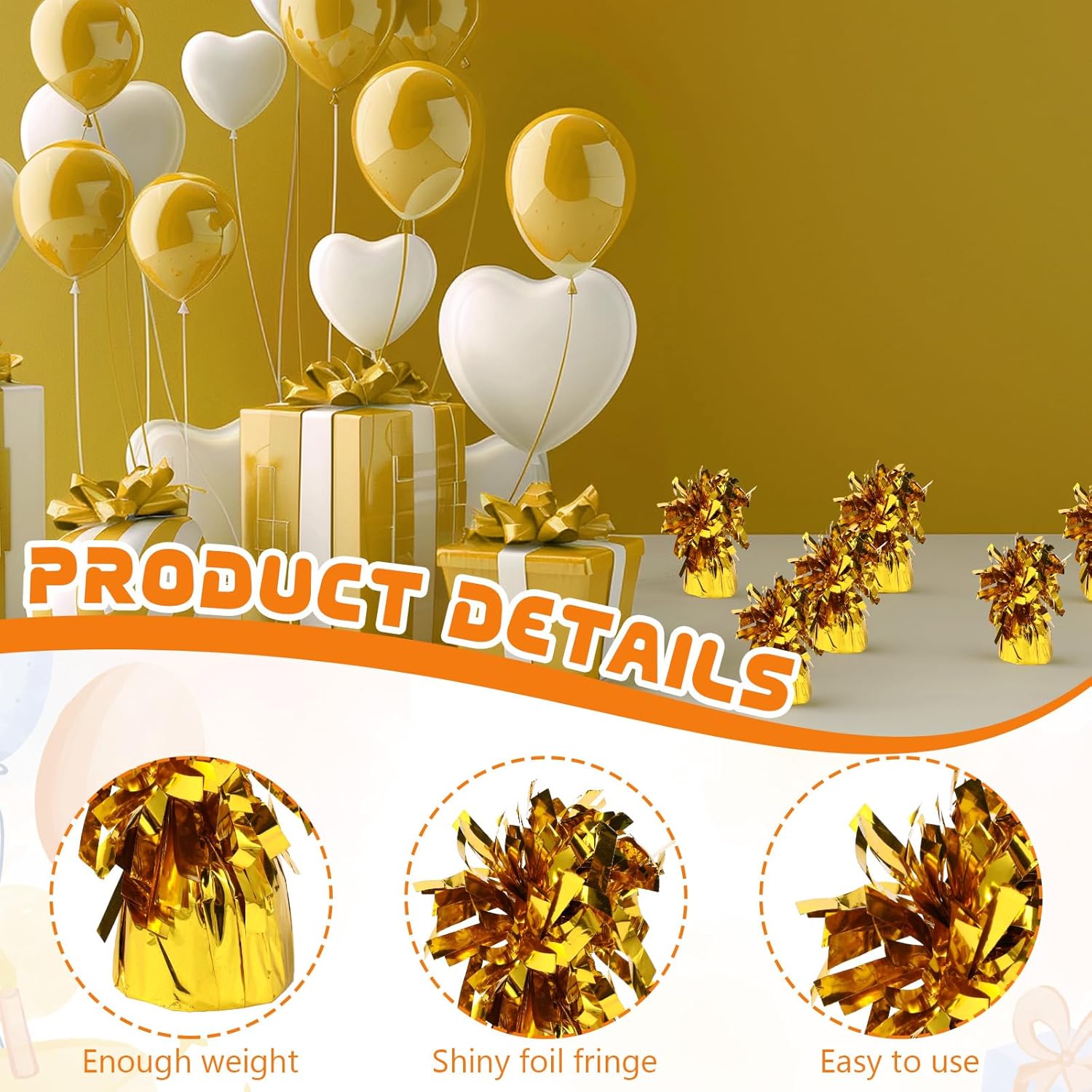 6 Pack Gold Balloon Weights Metallic Holder Anchors Balloon Holder Weights for for Birthday 2025 Graduation Party Christmas Wedding Celebration Decoration (Gold)