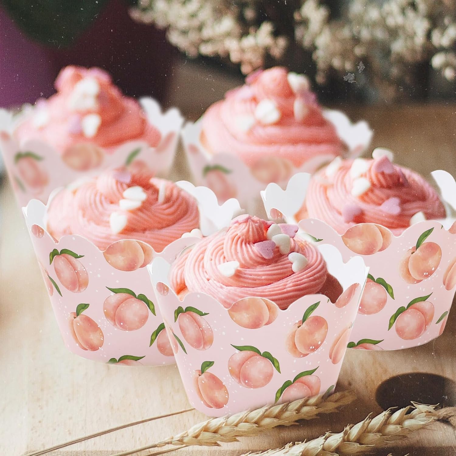 - Peach Design: Our cupcake liners feature delicate watercolor peach patterns. The soft pink and peach hues blend seamlessly, creating an eye-catching display that complements any cake decoration theme