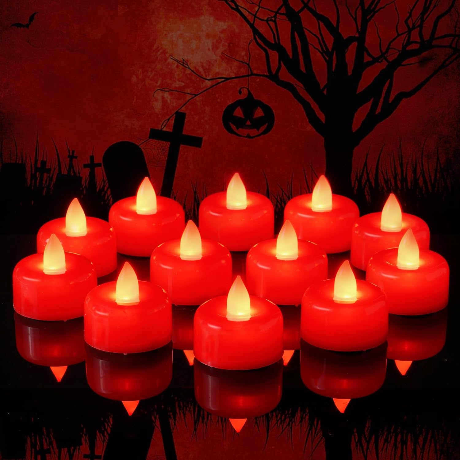 Amagic 24 Pack Red Flameless LED Tea Lights Candles Battery Operated, Electric Fake Tealight Candles for Votive, Wedding, Table Centerpiece, Party, Aniversary, Proposal, Halloween, Christmas