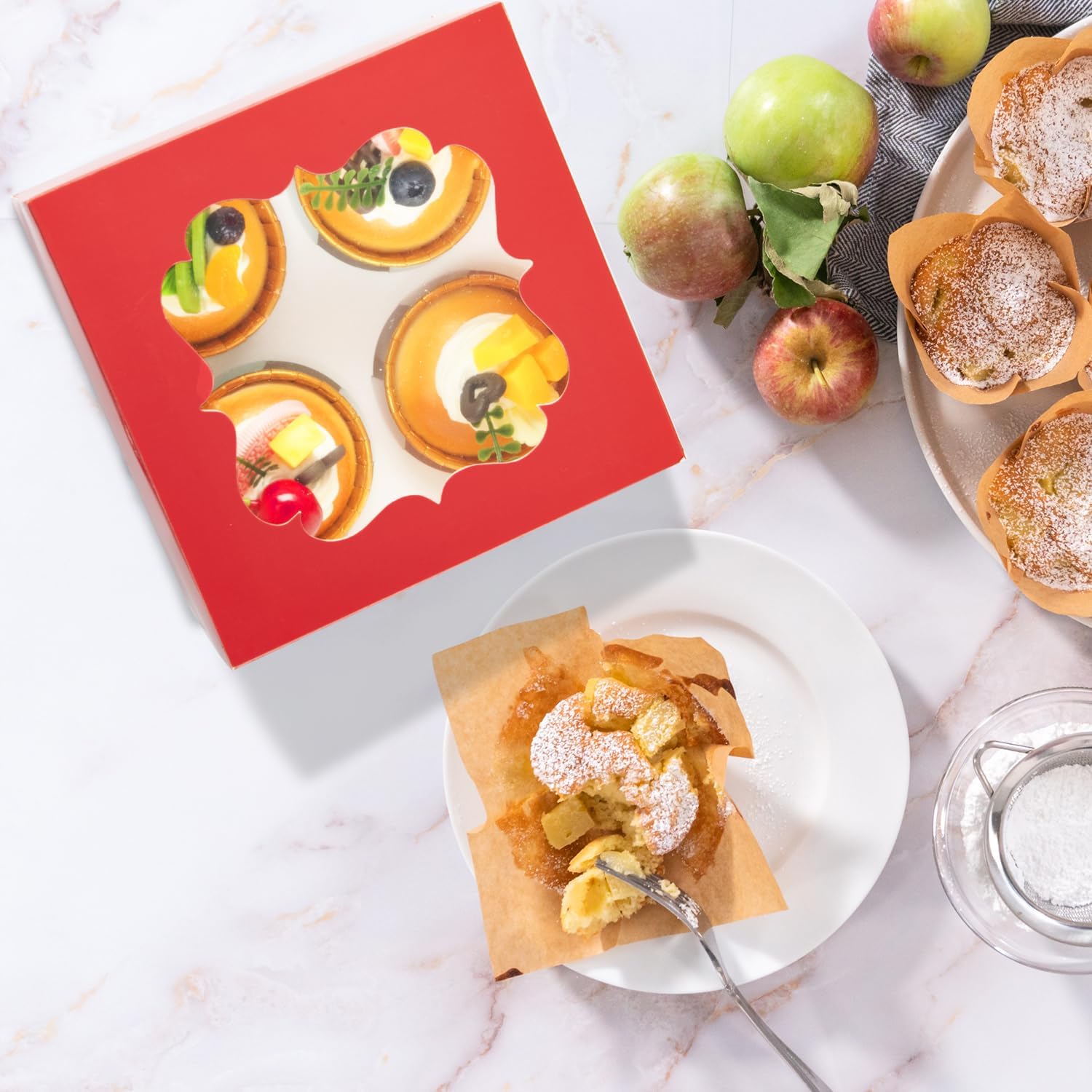 20 PCS 6.5 x 6.5 x 4 inch Paper, Cupcake Boxes with Inserts and Window Hold 4 Cupcakes, Bakery Boxes For Cupcakes Carrier, Cupcake Containers (Red-4 Holes)