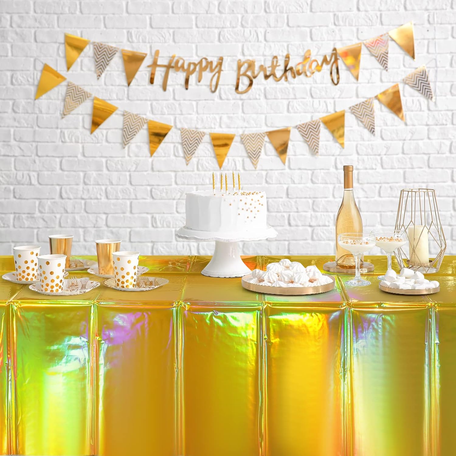 - Enjoy Party & Save Time: The gold iridescent tablecloth decoration is easy to clean, simply wipe to clean, or you can throw it directly after your party. The disposable table cover will save your time on cleaning, you can spend more time with family or friends and less time cleaning up.