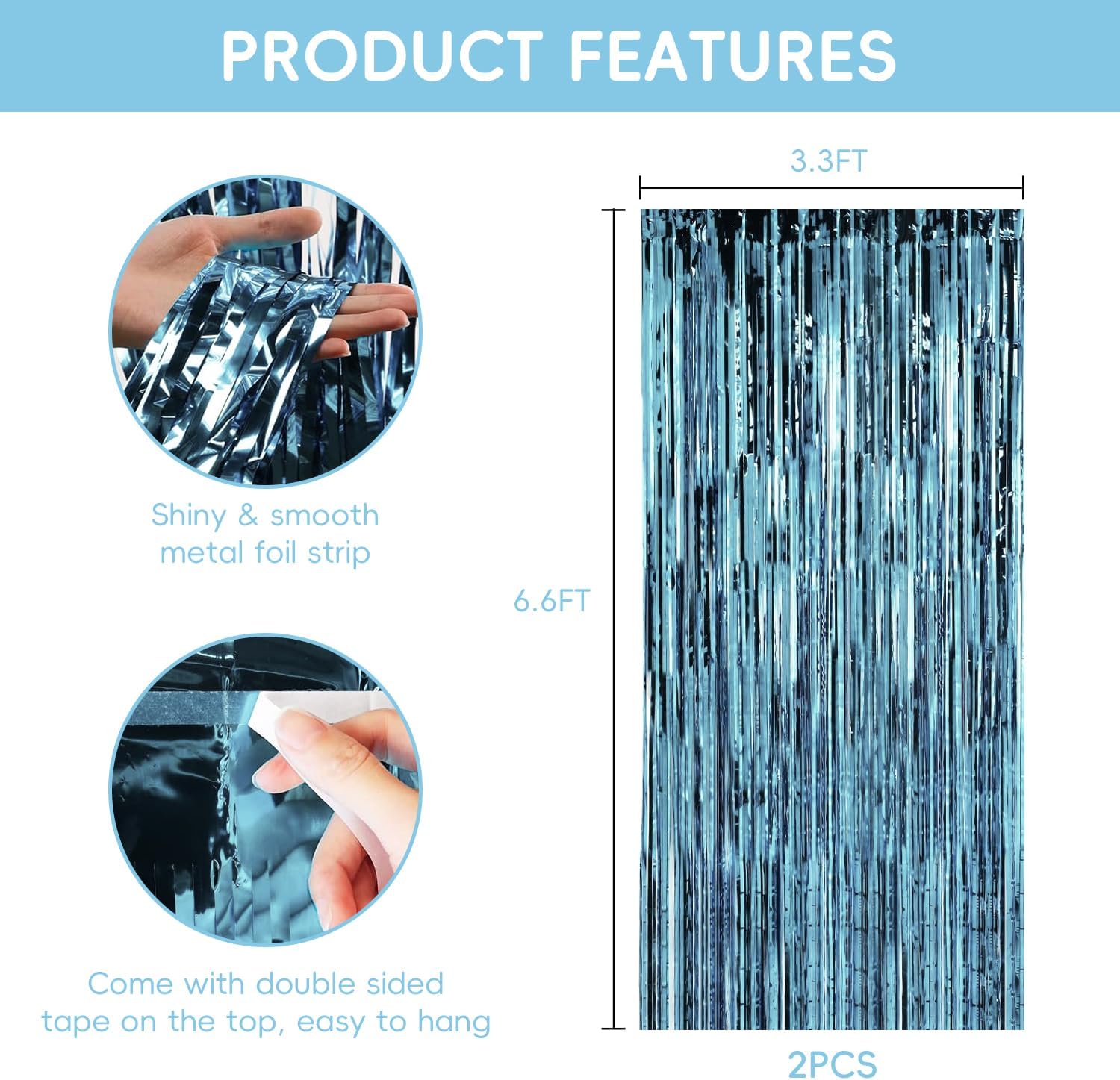 2 Pack Blue Pool Streamers Party Decorations Ocean Beach Theme Tinsel Backdrop Supplies Foil Curtain Backdrop for Baby Shower Birthday Bachelorette Wedding Brial Holiday Celebration Party Decorations
