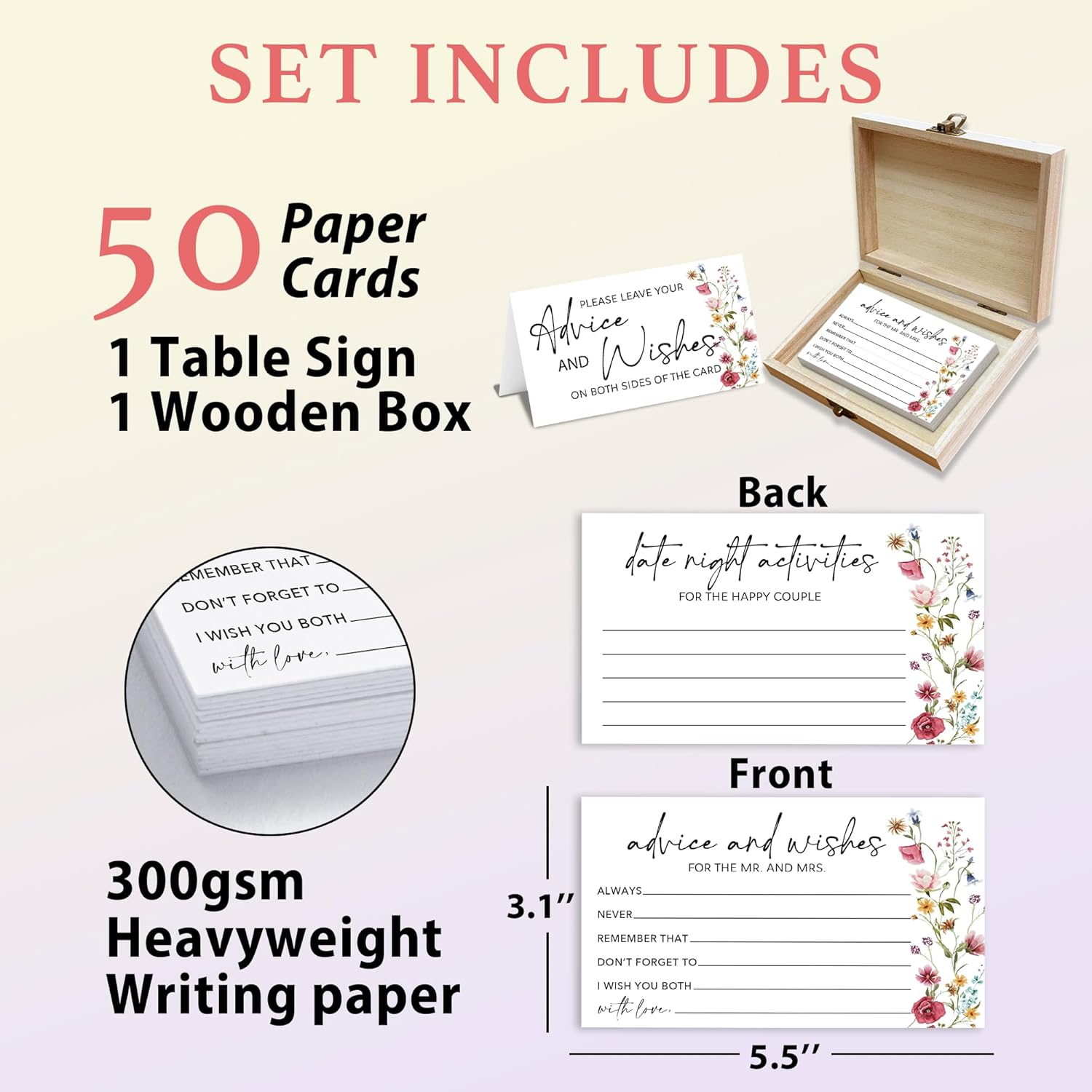 - Set Includes: Elevate your celebration with our deluxe set that includes 50 Pcs marriage wishes cards, an advice and wishes box for couples wedding shower decorations