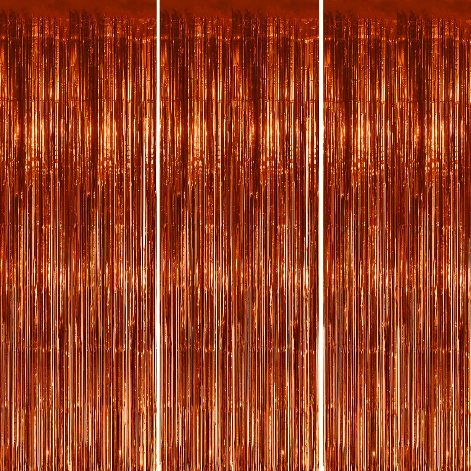 3 Pack Foil Fringe Backdrop - Bronze Shiny Tinsel Curtains for Party Decoration/Photo Booth Props - 3.3x8.2 FT Metallic Foil Backdrop for Birthday, Wedding, Graduation, Christmas.