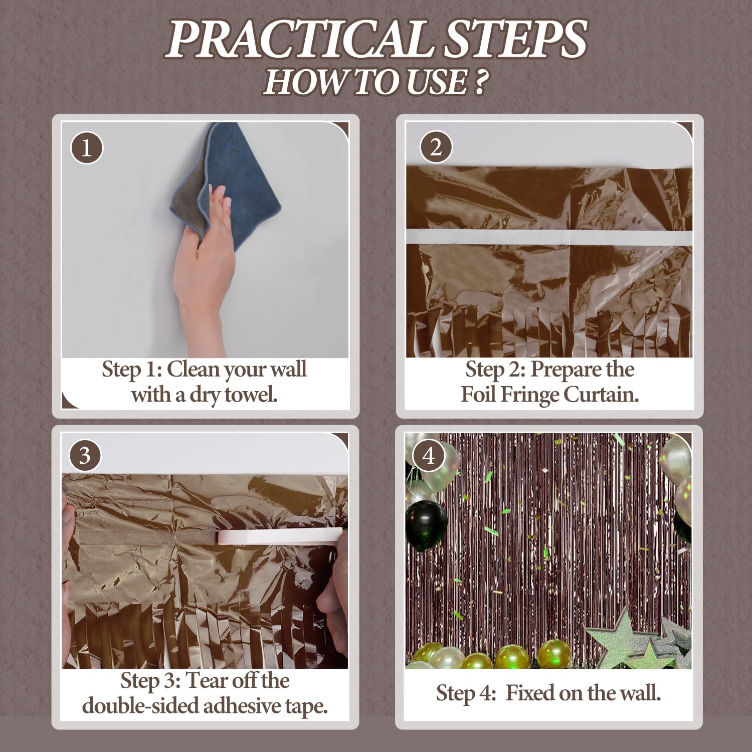 - 【Easy and Convenient Installation】These foil fringe curtains are easy to install and can be quickly hung on smooth surfaces using the included double-sided adhesive tape. No extra tools or materials required.