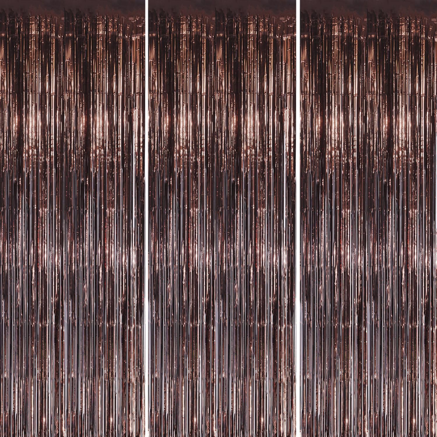 3 Pack Foil Fringe Backdrop - Brown Shiny Tinsel Curtains for Party Decoration/Photo Booth Props - 3.3x8.2 FT Metallic Foil Backdrop for Birthday, Wedding, Graduation, Christmas.