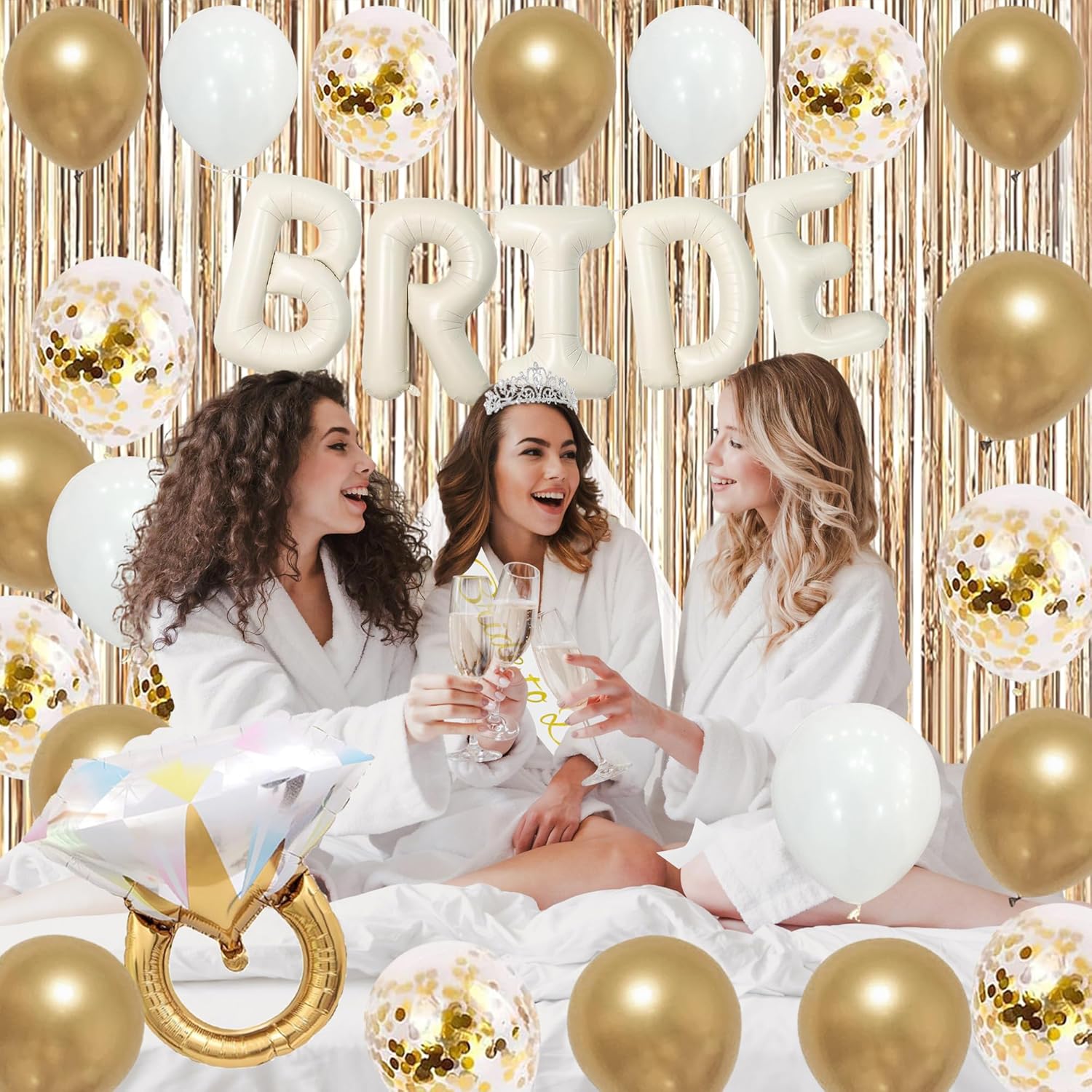 - [Quality Bachelorette Party Decorations] Each set of bride to be champagne gold birthday decorations are carefully checked to ensure the following: Quality balloons are long-lasting, won't burst easily, no unpleasant holes or odors, use air and helium. No more misspelled Bride to Be white gold banner and poor quality balloons! Every women will have a happy bachelorette party.