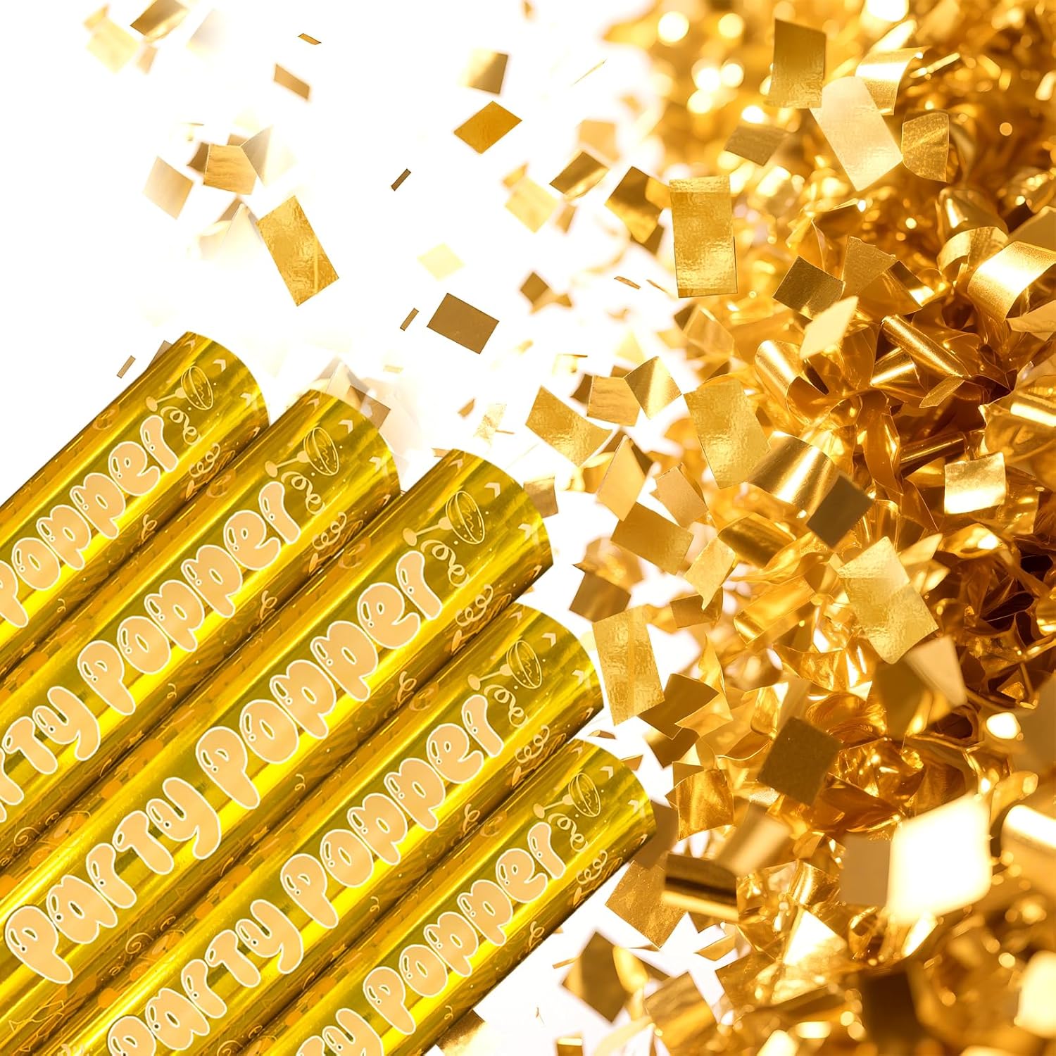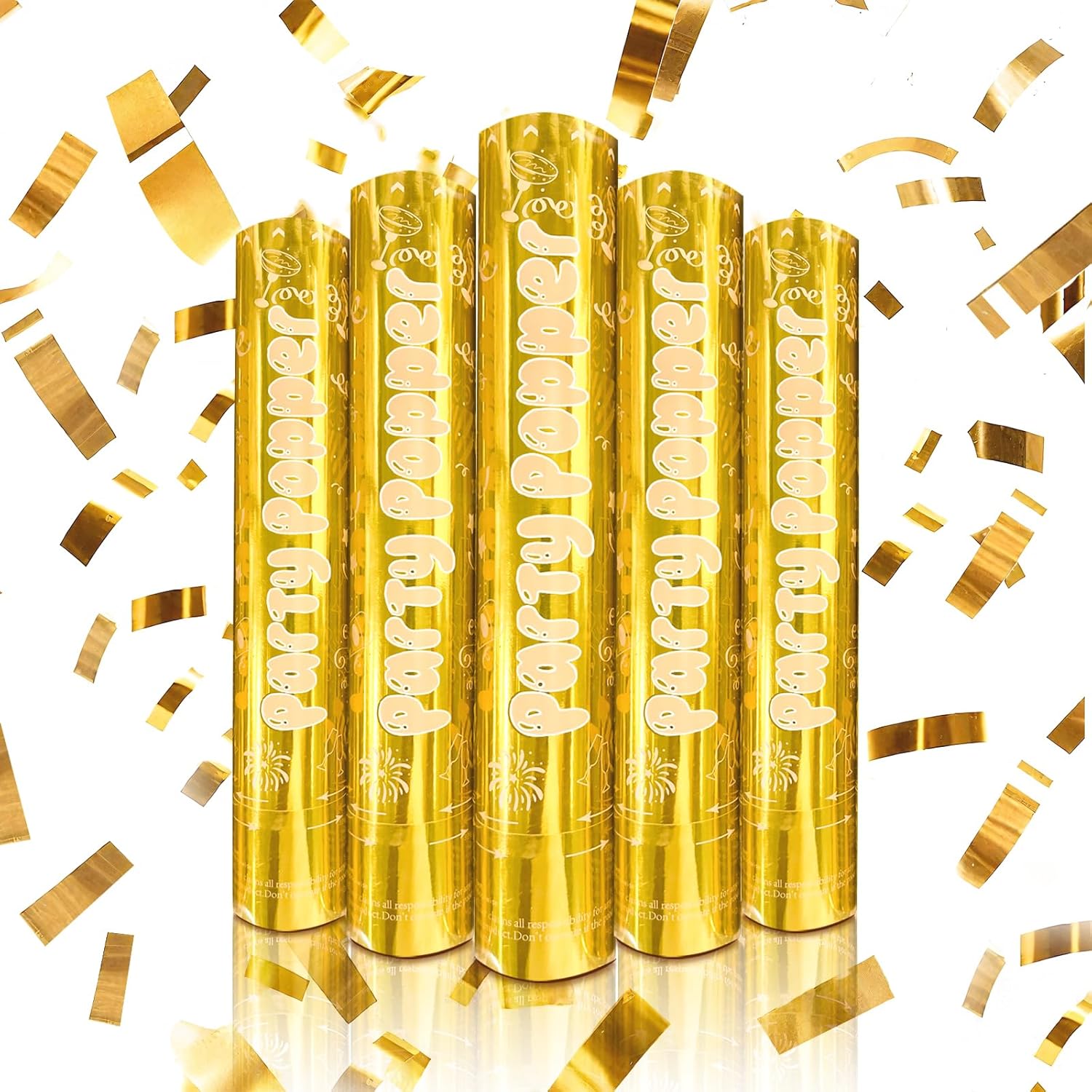12 Inch Gold Confetti Poppers | 5 Pack Confetti Cannons for Weddings, New Years, Graduation, Anniversary and Any Celebration