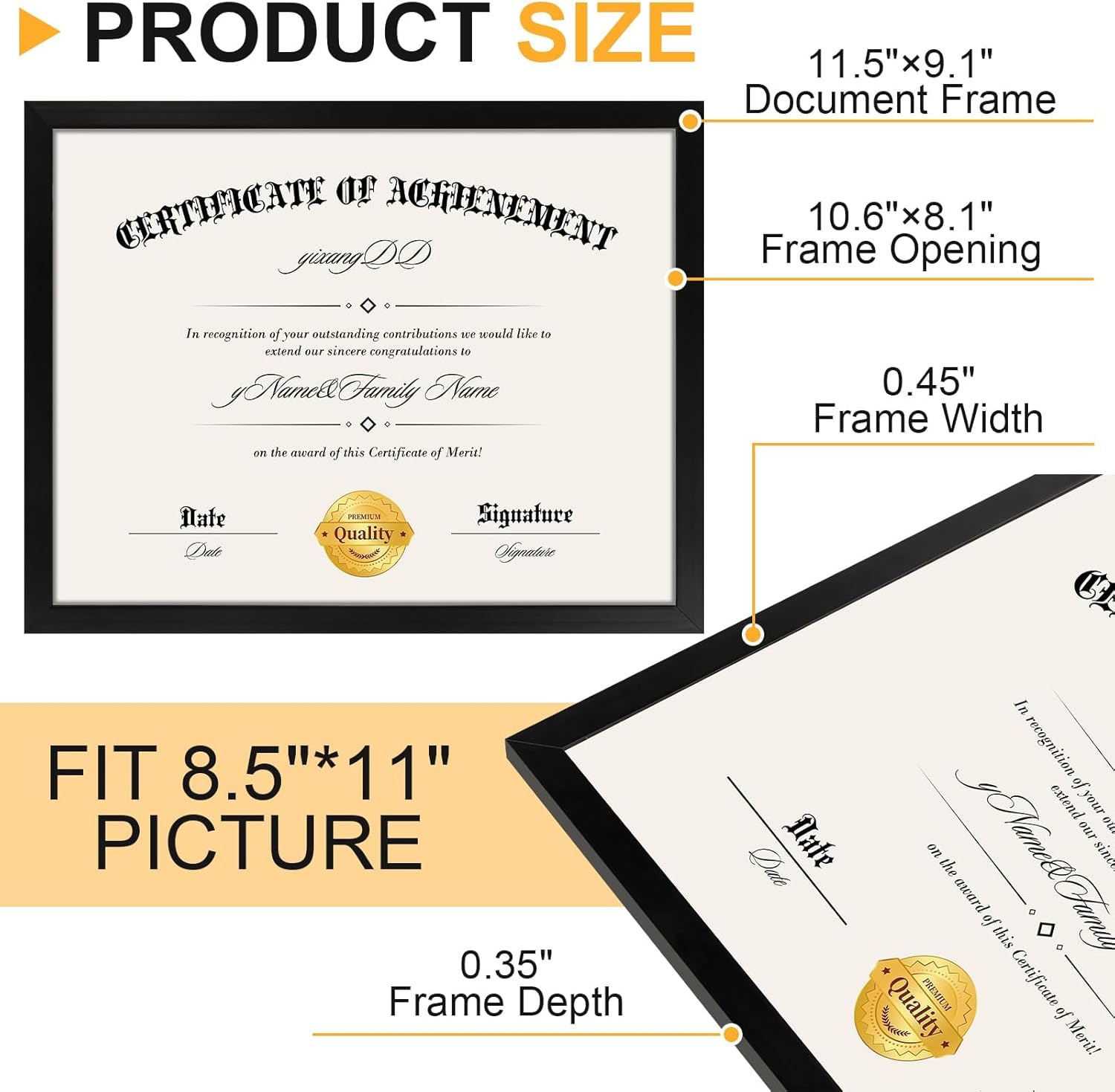 - 12PCS CERTIFICATE FRAME: you will receive 12pcs 8.5*11 inches certificate document frames. PLEASE NOTE: The plexiglass has a protective film on both sides, please peel off the film carefully before use