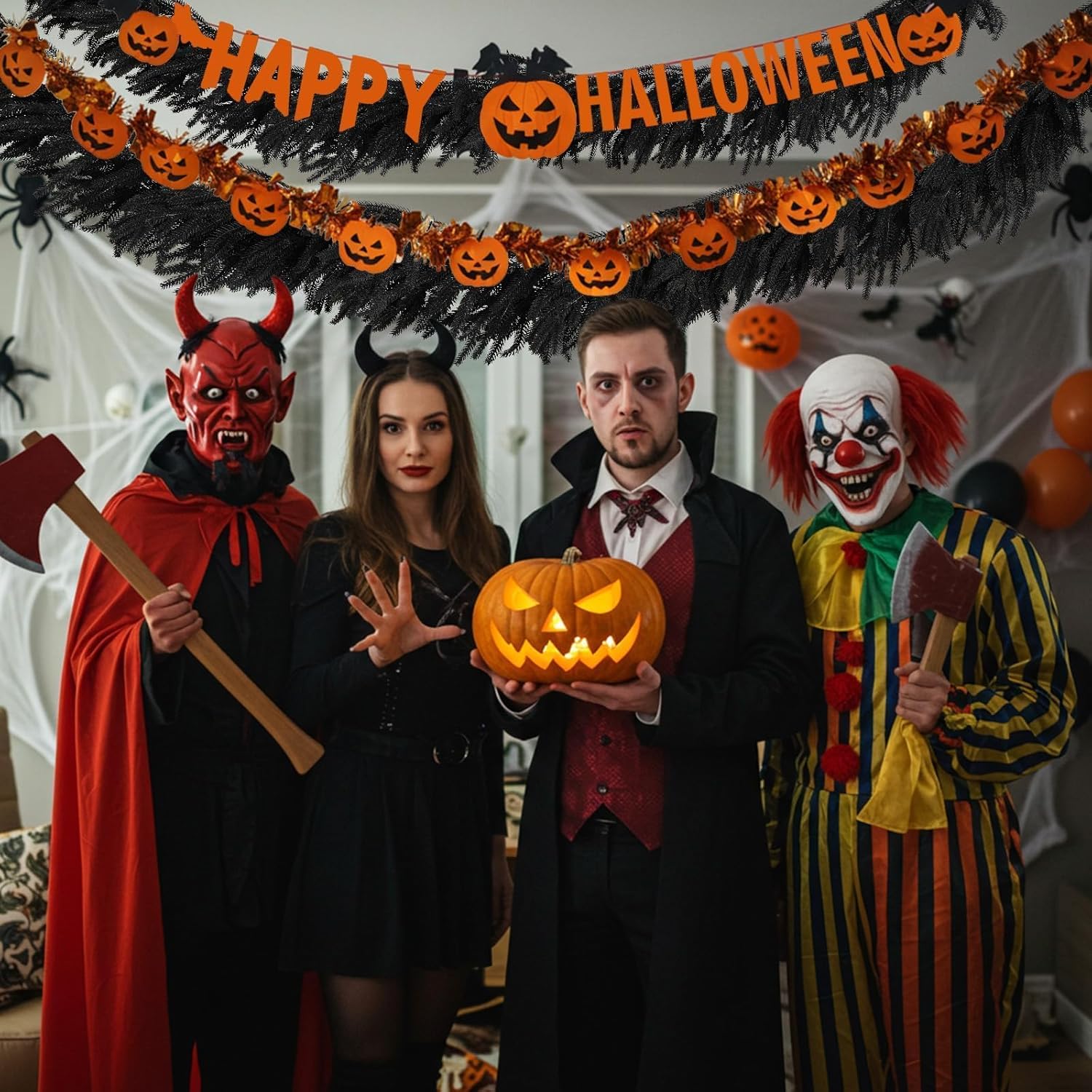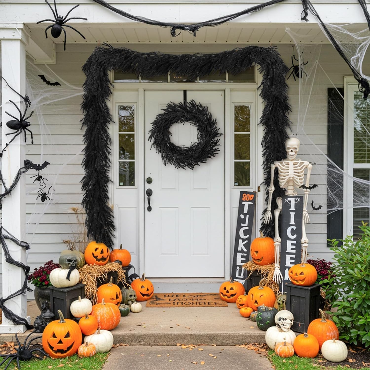 - Unique Design: Black is the classic Halloween theme color. Norfolk Pine garland is a unique and innovative design that perfectly blends into the mysterious and terrifying atmosphere of Halloween. And there's no need to spend time on maintenance, Halloween black garland are always fresh and won't rot