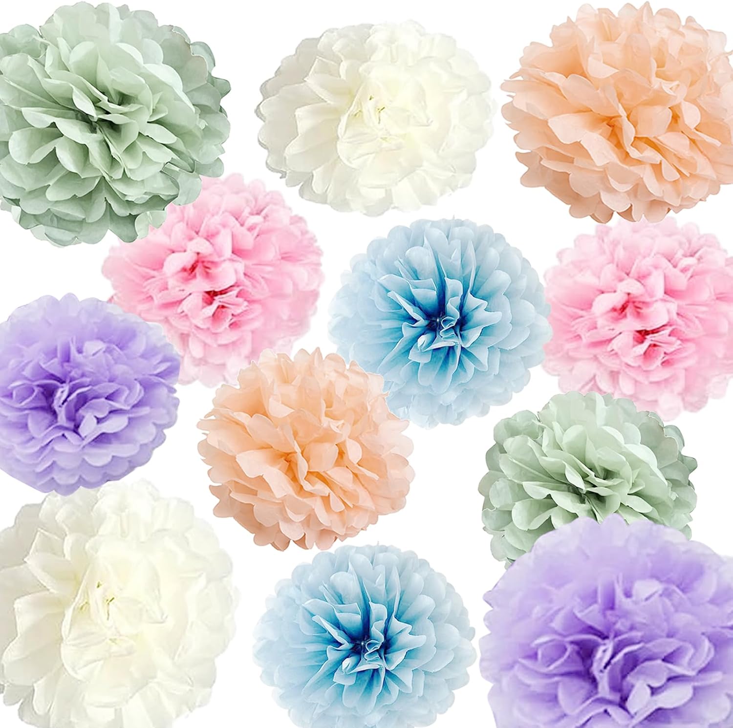 - 【 Package Included 】- Assorted 12inch flower Pom Poms -6pieces in 6 different colors, Assorted 10 inch Flower Pom Poms -6 Pieces in 6 different colors , Total 12pieces