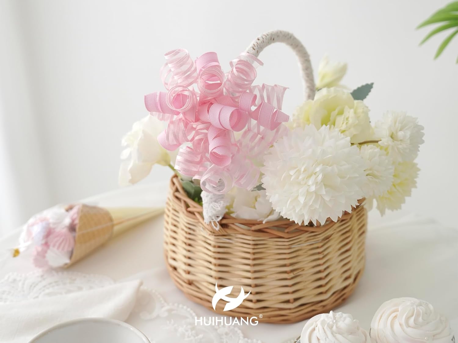 - SIZE & PACK: Each package contains 8 pcs pink curly bows, and made from 12 strands of 3/8" wide grosgrain and sheer satin ribbon that adds a airy, elegance and luxurious feel to any gift or decoration. Bows measures 5"~5.5" wide
