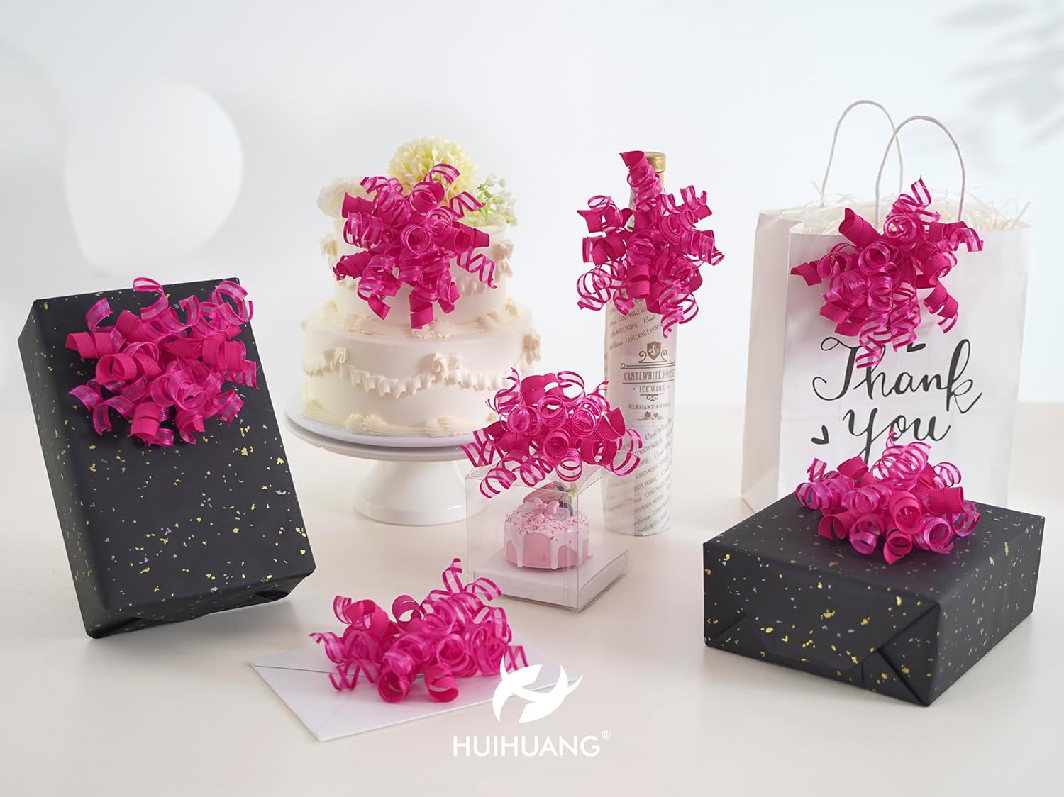 HUIHUANG Hot Pink Bows for Gift Wrapping Curly Gift Bow 5 inch x 8 Counts Self-Adhesive Ribbon Bows for Presents, Paper Bag, Party Favors, Wrapping Accessories, Holiday Wedding Decoration