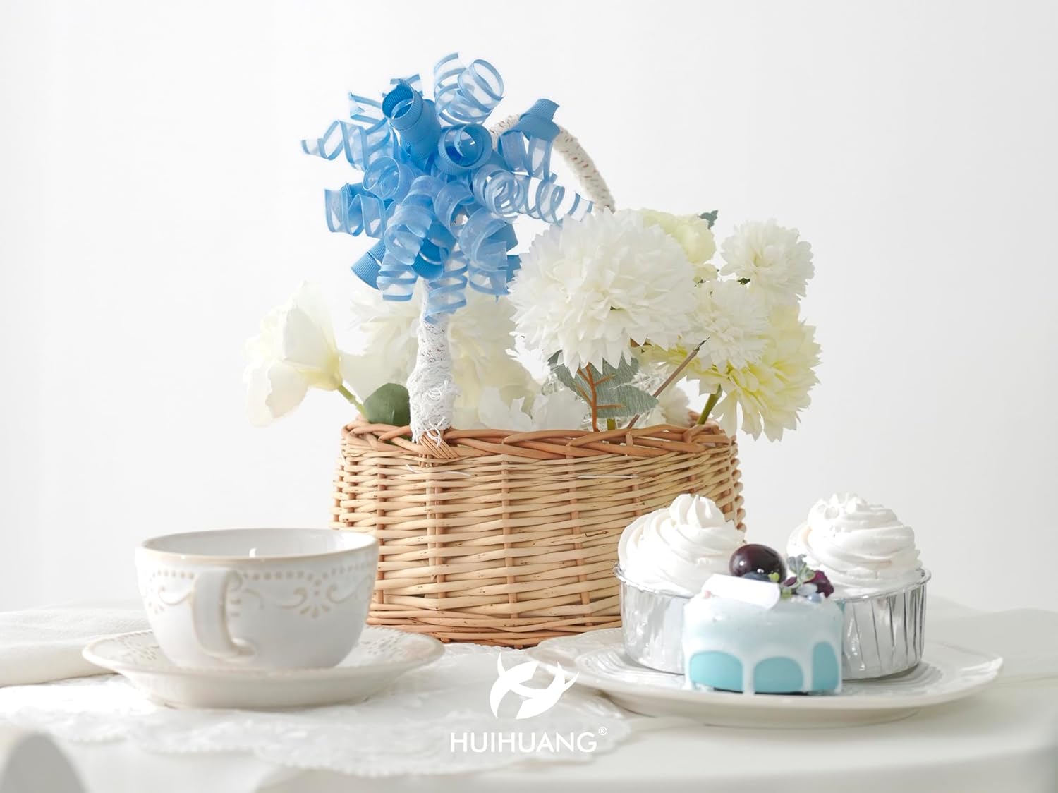- SIZE & PACK: Each package contains 8 pcs baby blue curly bows, and made from 12 strands of 3/8" wide grosgrain and sheer satin ribbon that adds a airy, elegance and luxurious feel to any gift or decoration. Bows measures 5"~5.5" wide