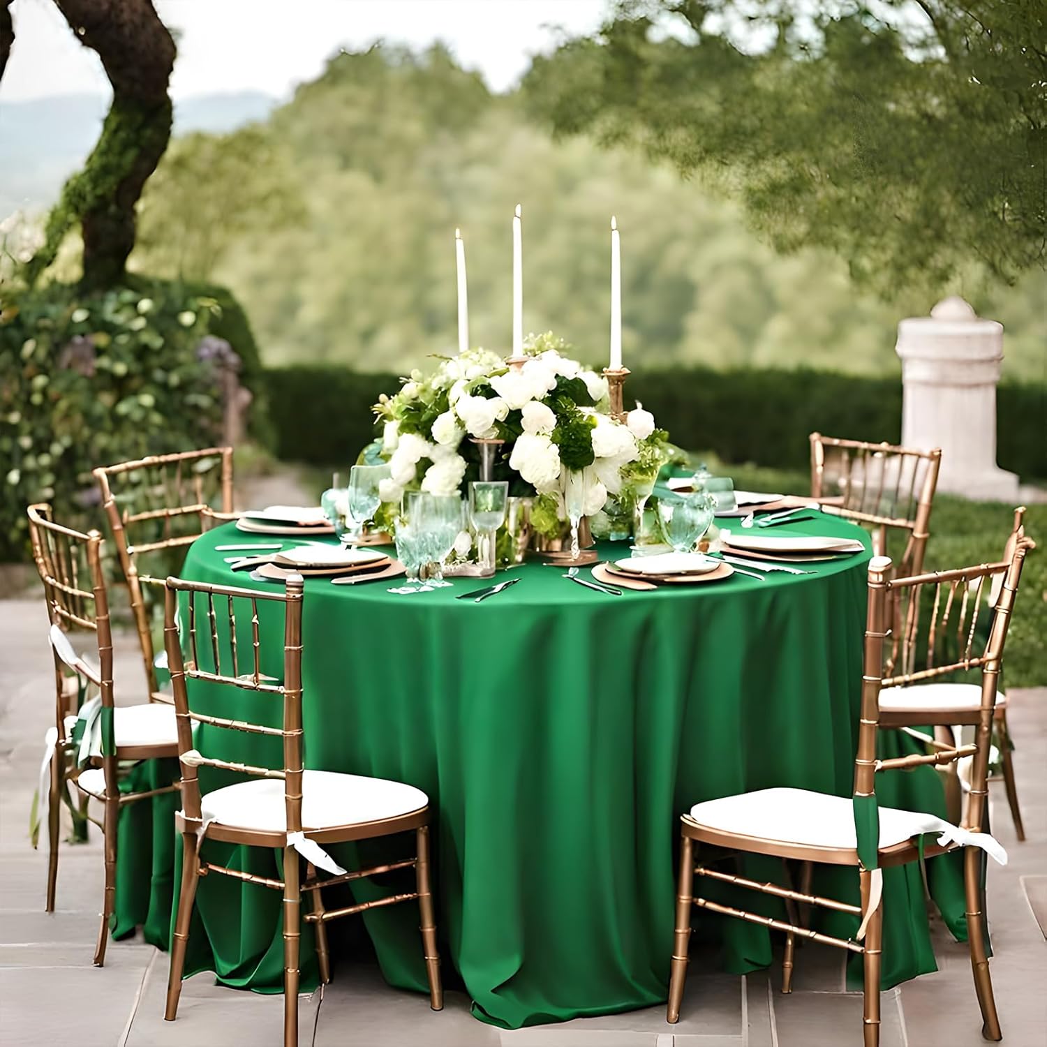 - Measurements and Colors: This green cloth tablecloths is 120 inches in diameter, perfect for standard 8FT(96") round tables, providing a 12" drop, or 24" if your round table is 6FT (72"). This table cloth round cover is available in totally 5 colors. You’ll be able to choose a luxurious and ideal table cover for your table. Please measure the size of your table before purchasing.