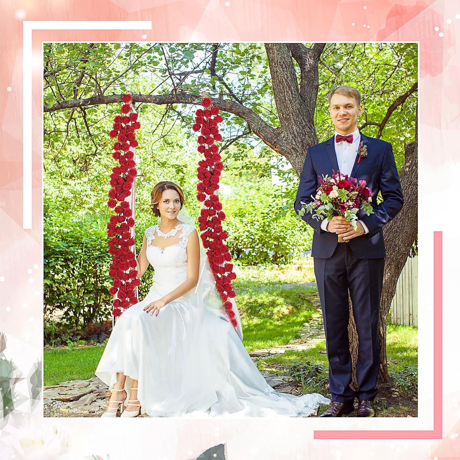 - The Package Includes: you will receive 4 artificial red rose vines; Each rose garland is 6 feet long and diameter of each flower measures about 3.7 inches; Each rose wreath contains 62 red roses; If you feel that the length is not enough, you can connect multiple vines together for use