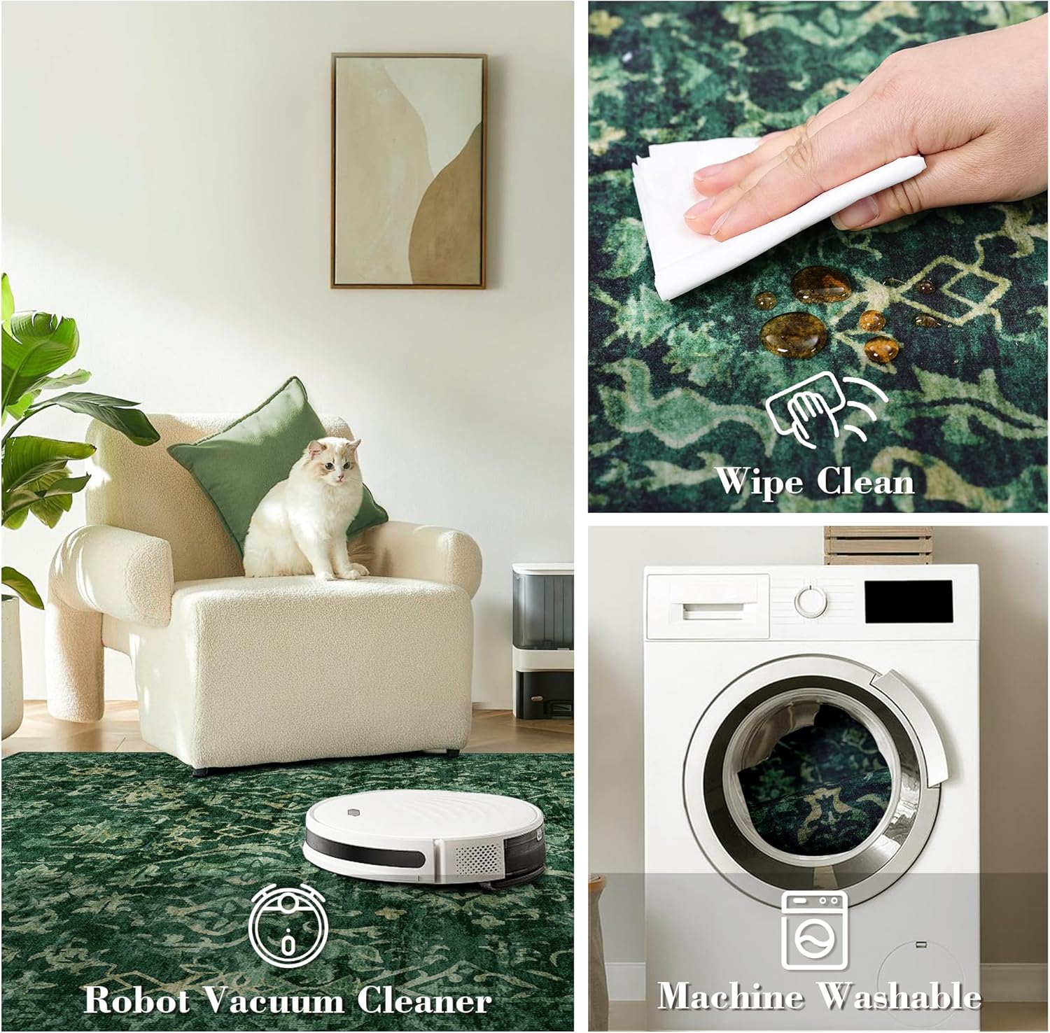 - Easy to Clean Washable Rug 2x3: Say goodbye to hidden dirt and debris. The 0.2 inch low pile of this indoor rug for entryway keeps most dirt on the surface, you can clean it regularly with a vacuum cleaner, broom or rag. For deep cleaning, machine washing is available and it won't easily deformed and still as a new antique rug.