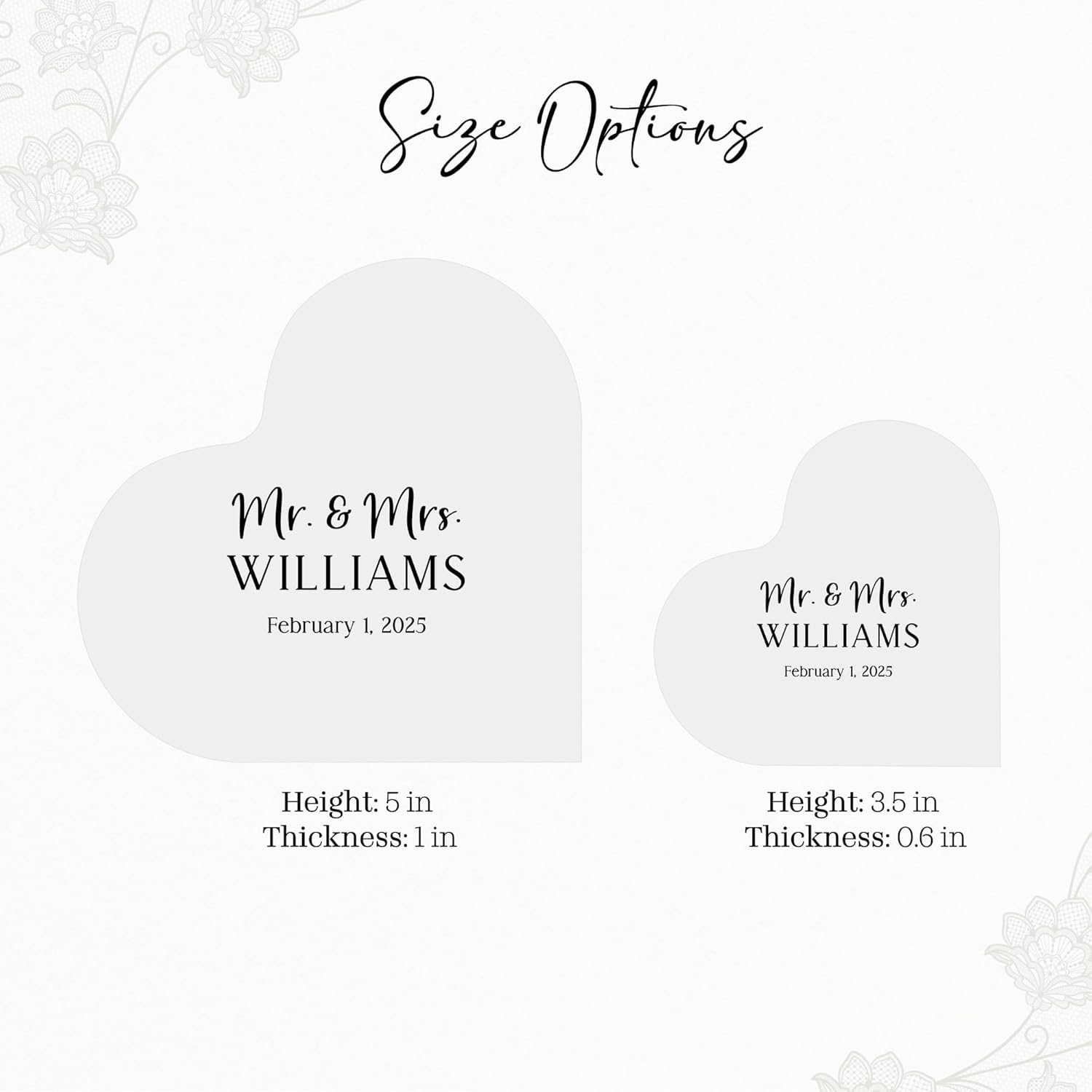 - 2 Size Options: Available in two sizes—Large (5" height, 1" thickness) and Small (3.5" height, 0.6" thickness)—this cake topper is designed to suit any wedding or engagement ceremony.