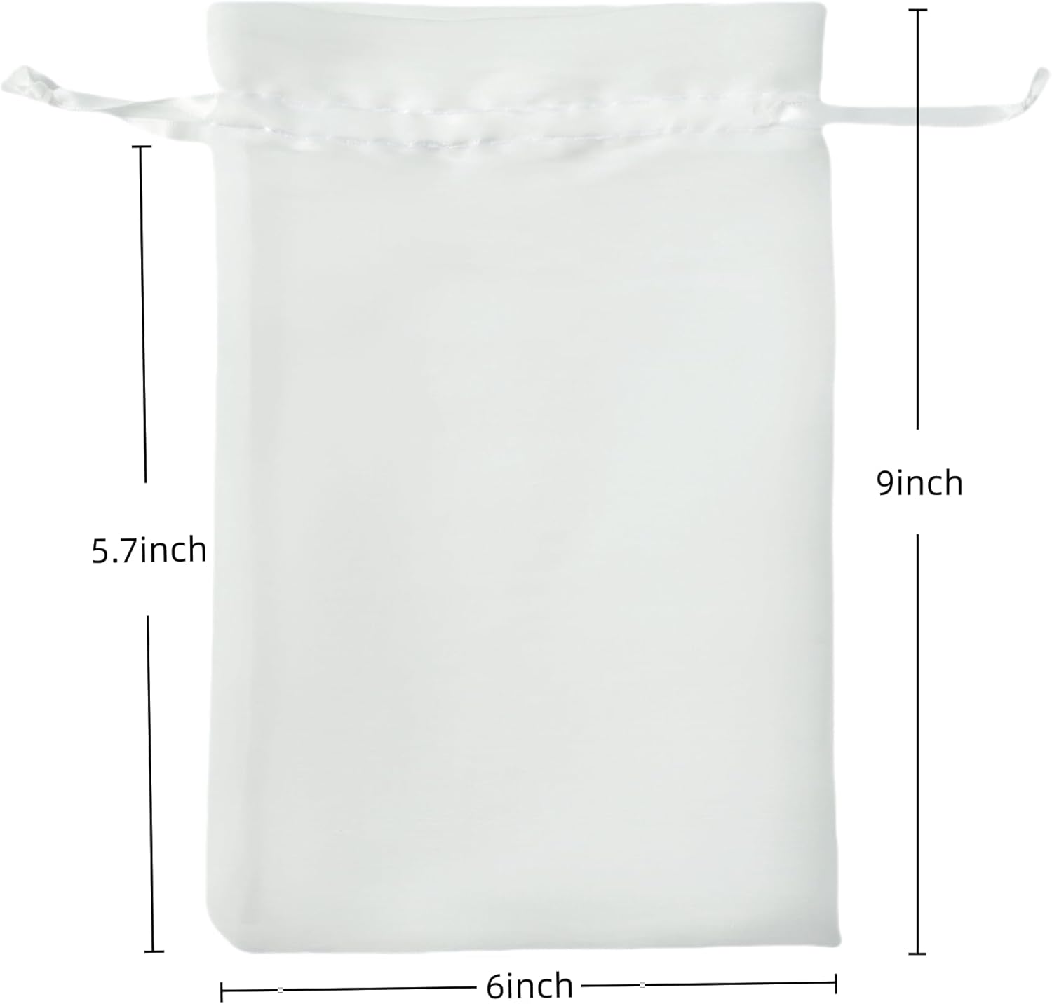 - SIZE: These drawstring mesh pouches combine functionality with elegance, the sheer organza fabric beautifully displays contents while securely holding. Measuring 6" x 9" (15.3 x 22.9cm), package include 20pcs reusable organza bags. Measure your items before choosing sizes