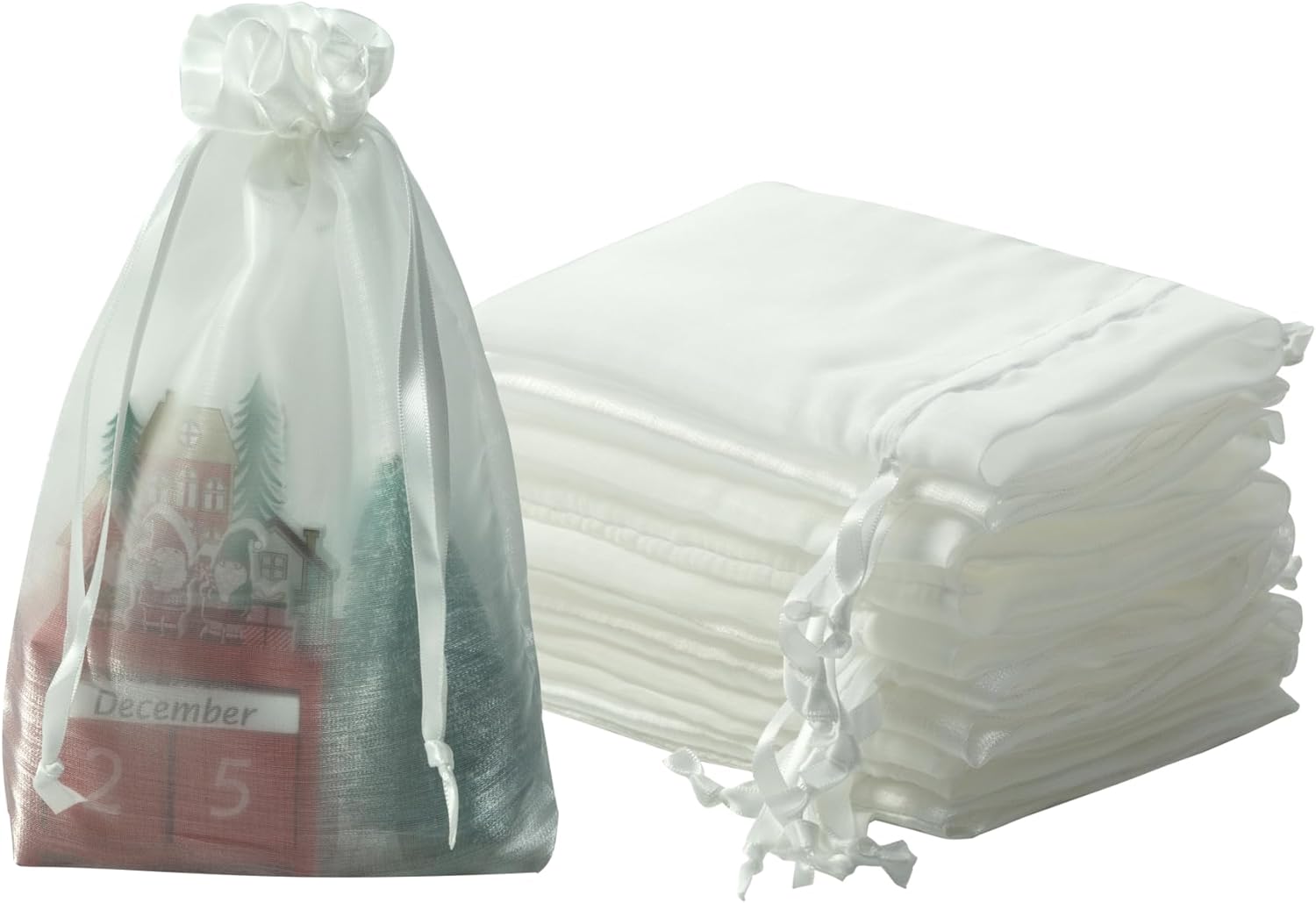 QIANF 20 Pcs White Small Organza Bags 6X9 inch for Wedding Favors with Drawstring, Mini Mesh Gift Bags Jewelry Pouch for Candy Bridal Shower Party Favor Baby Shower Christmas