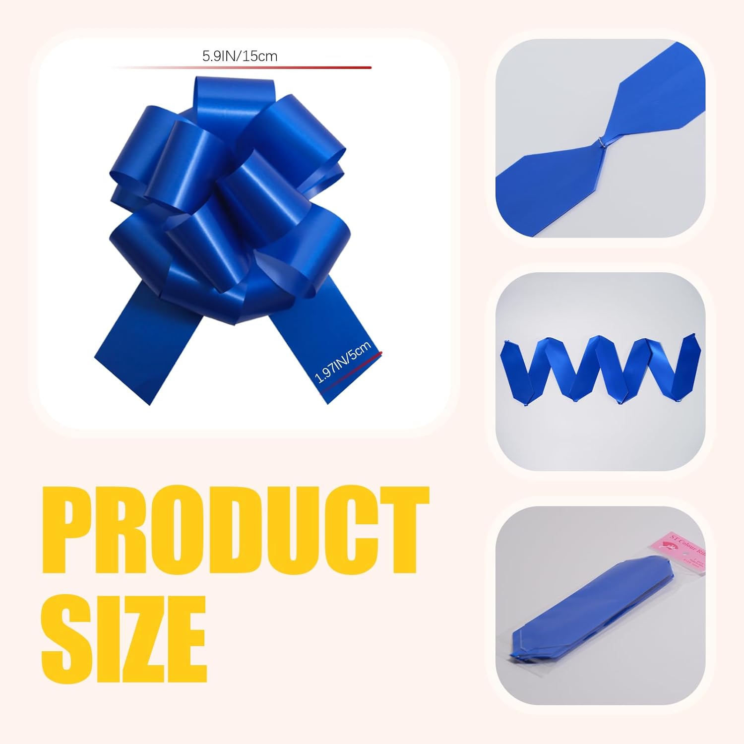 12 PCS 6 Inch Blue Pull Bows - Perfect for Gift Wrapping, Wedding Decor, Car Bows, Birthday Parties, Christmas and Valentine's Day