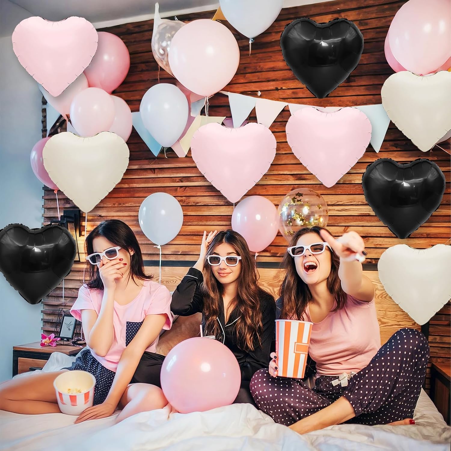 - 【12PCS HEART BALLOONS】Package include 4pcs cream white heart foil balloons,4pcs black heart foil balloons,4pcs baby pink heart foil balloons,1pc straw.Large enough to help you better decorate your party.