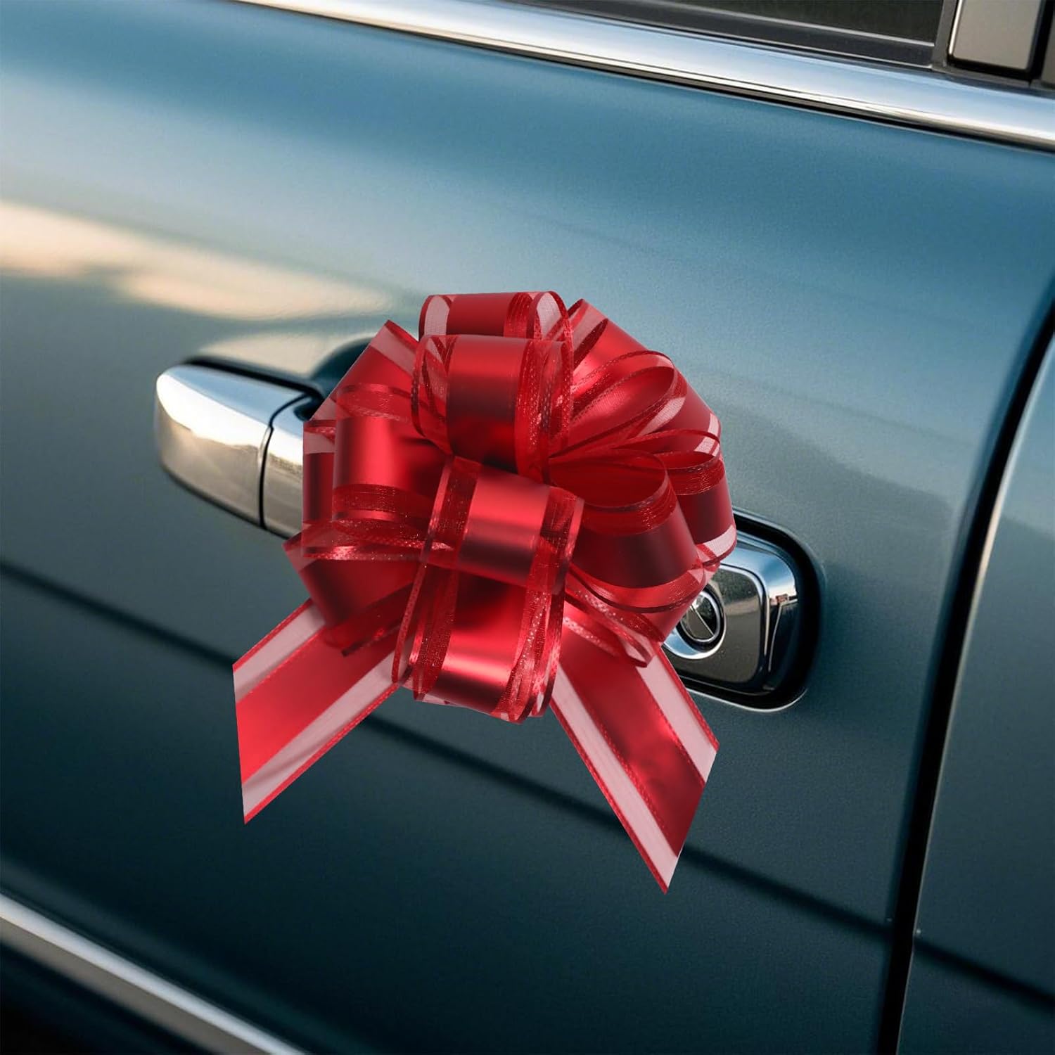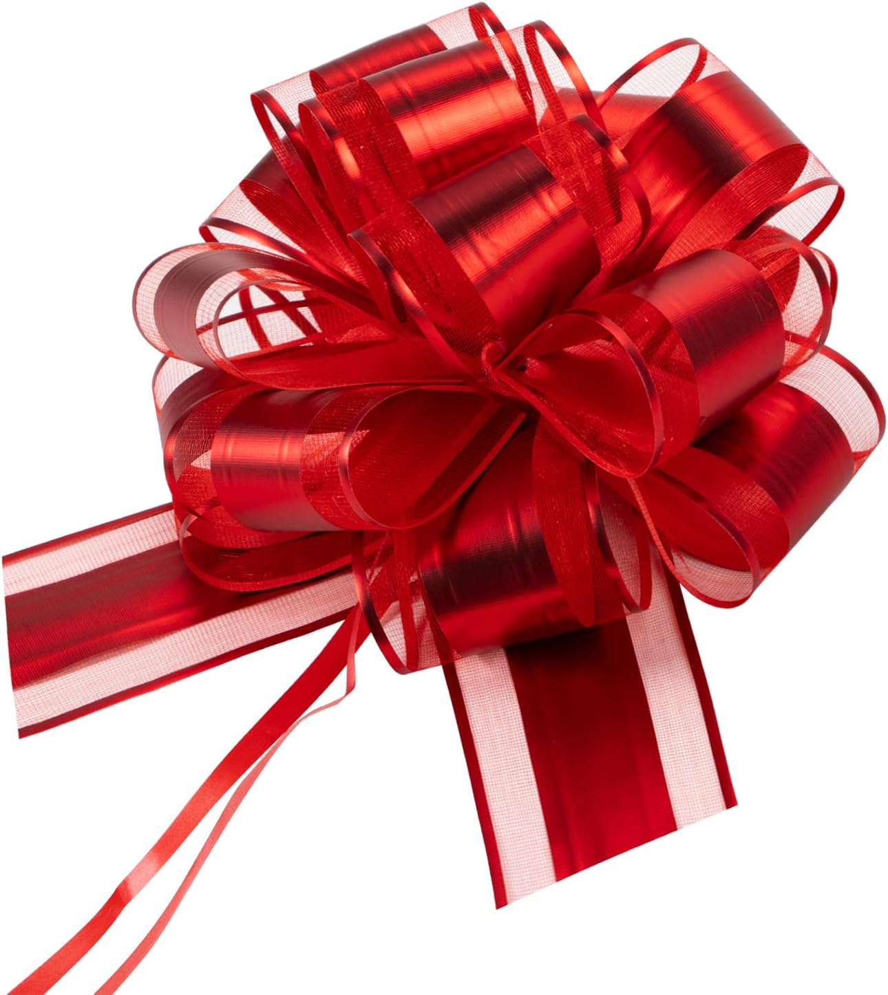 12 PCS 6 Inch Organza Red Pull Bows - Perfect for Gift Wrapping, Wedding Decor, Car Bows, Birthday Parties, Christmas and Valentine's Day