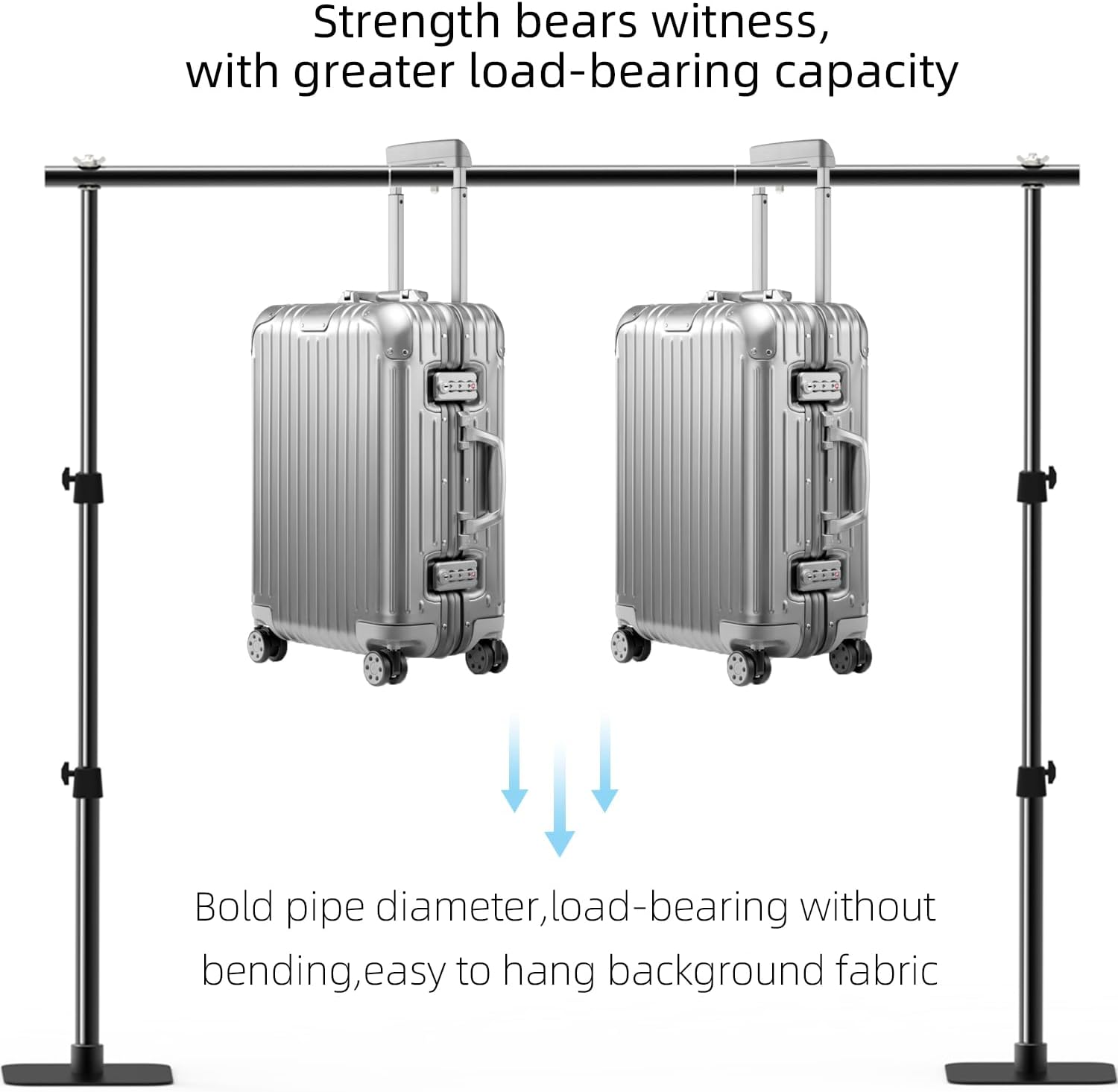 - 【Adjustable Telescopic Backdrop Stand】The backdrop stand is designed as a 4 section crossbar, making it more flexible in use. The Min. Width: 5ft (2 PCS crossbar), the Max. Width: 10ft (4 PCS crossbar). You can adjust to the appropriate width to fit different sizes of backdrop. And the height is adjustable from 2.7 ft to 10 ft.