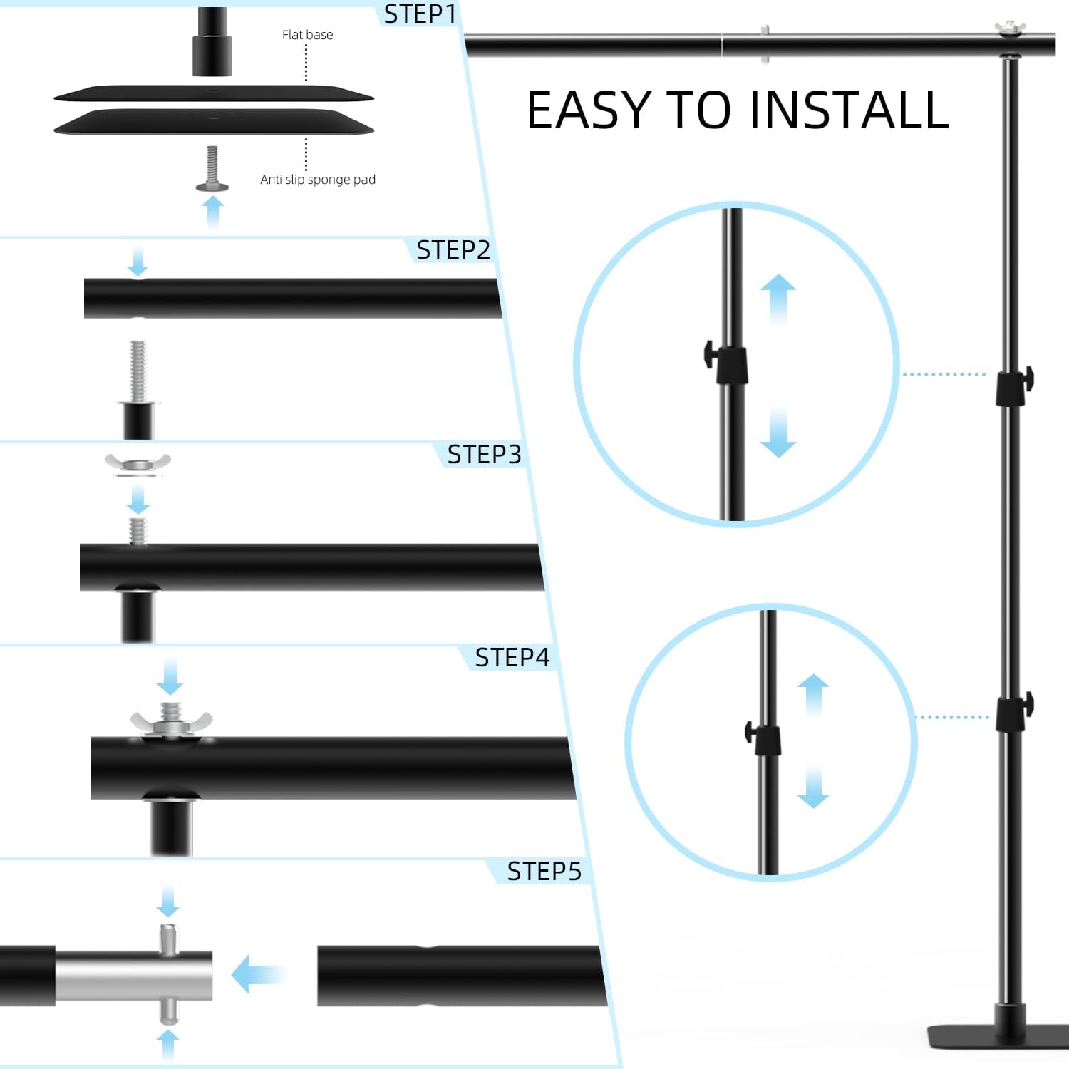 - 【Heavy Duty Flat Base】The backdrop stand with heavy duty flat base provides stability and is not easy to tip over. Compared with a tripod base, it takes up less space, easy to carry and stored in the equipped bag.