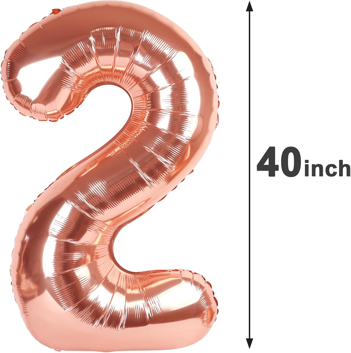 - 1.Make Party Charming with Rose Gold Number Balloon:You will receive an uninflated 40 inch number 2 balloon.Balloons are always the best statement of romance and surprise. Big balloons symbolize vitality exoticism,adding glamour to 2nd birthday parties. Bright metallic rose gold and huge size make 2 balloon number a highlight of special parties.Choose one or more rose gold numbers from 0-9 balloon,and use 2 2nd 12 22 32 42 52 62 72 82 92 balloons bulk to create a lively charming birthday party!