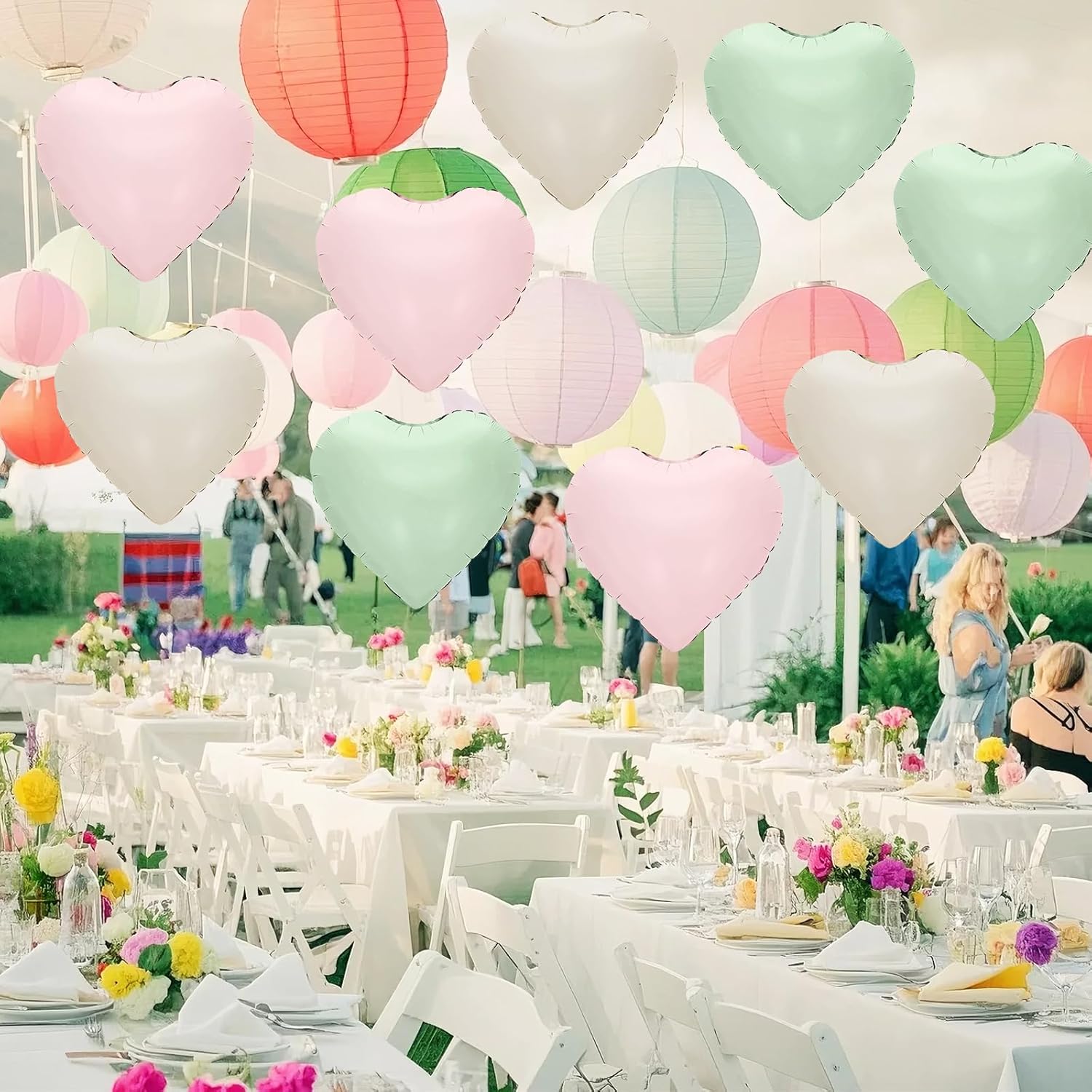 - WIDELY APPLICATION:This pink green white heart balloon can be used for a variety of occasions,such as birthday,anniversary,Valentine's Day,Mother's Day,baby shower,gender reveal,weddings,engagement,bridal shower,marriage proposals and other parties,can also be used as a photo background,etc.Make a deep impression on the party guests.