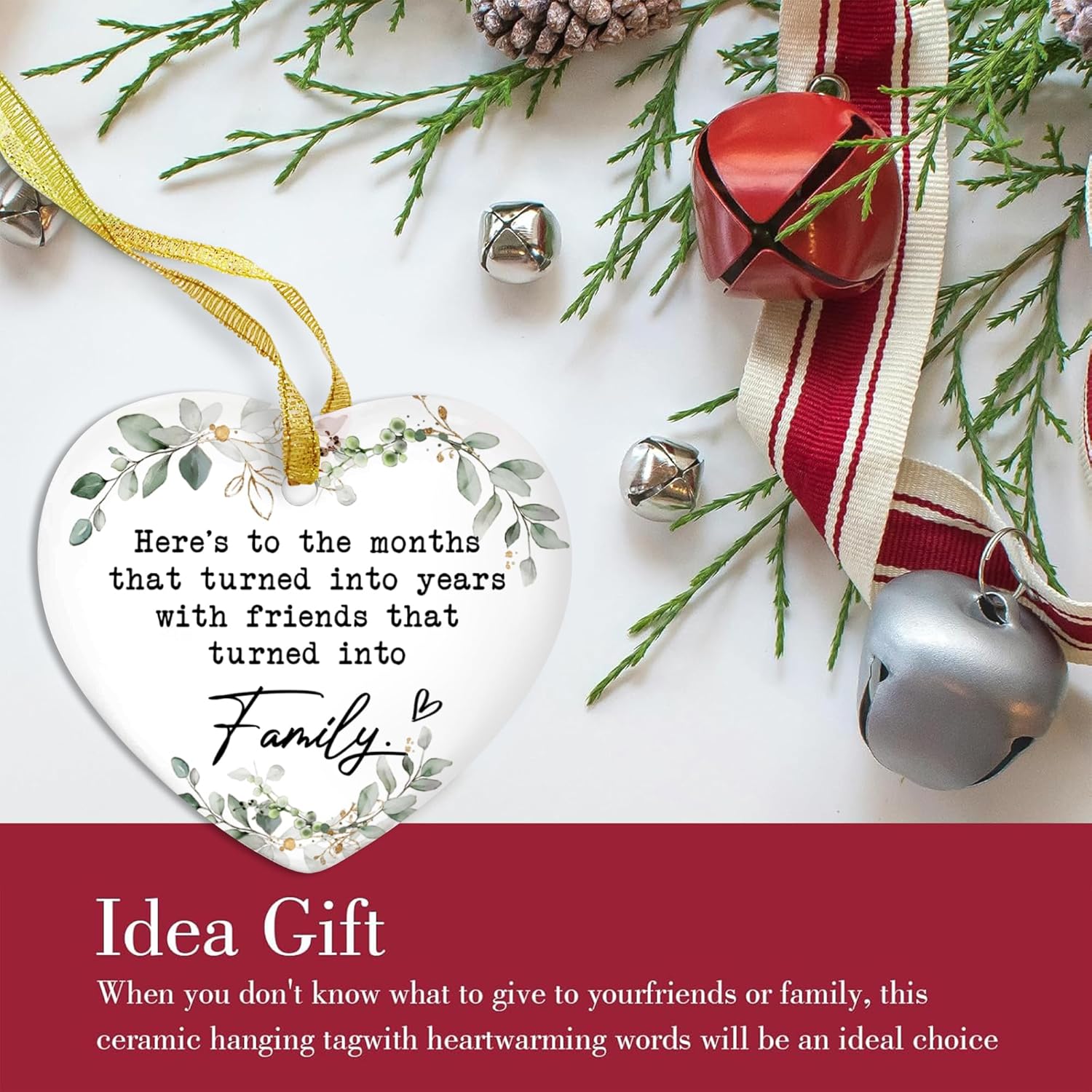 GOSSBY Friendship Ornament for Women for Friend - Friends That Turned into Family - Heart-Shaped Ceramic Xmas Decoration for Tree 2025