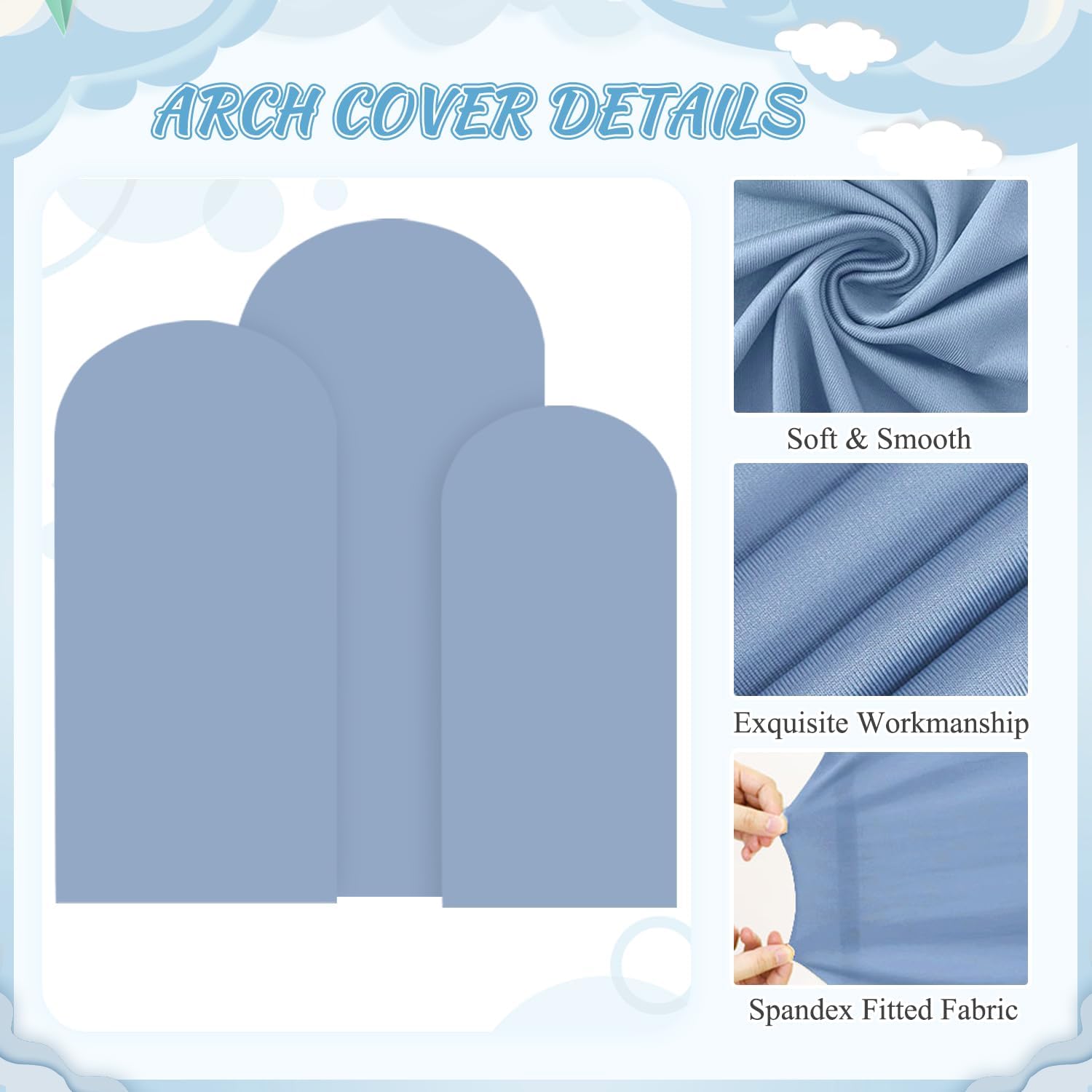 Arch Backdrop Stand and Cover Set of 3 (6FT, 5FT, 4FT) Backdrop Stand for Parties Dusty Blue Arch Covers Stretchy Backdrop Metal Arch Frame Stand for Wedding Graduation Ceremony Birthday Decoration